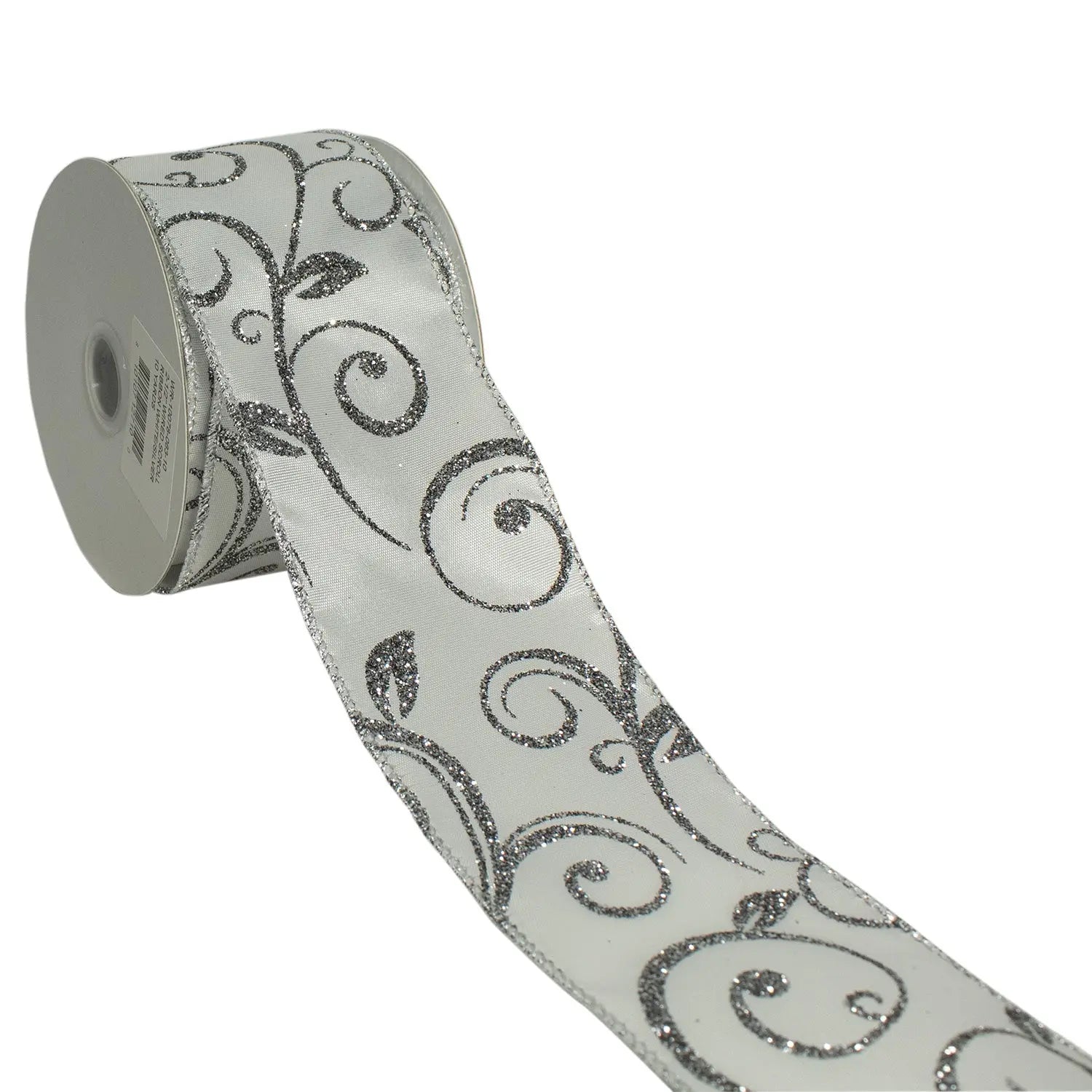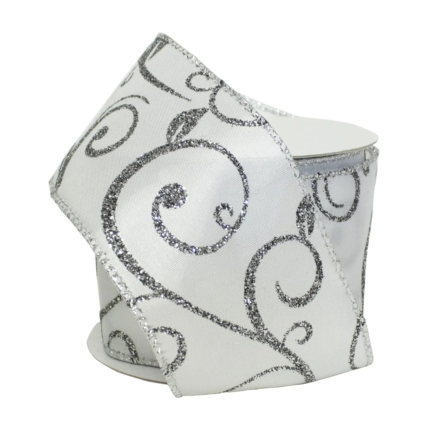 • Elegant Scroll: Add a touch of elegance to your holiday decor with our 2 1/2" Wired Ribbon featuring a stunning silver scroll design on a white ribbon backdrop. Each roll comes with 10 yards of ribbon, providing ample material to accommodate various decorating needs and creative endeavors.