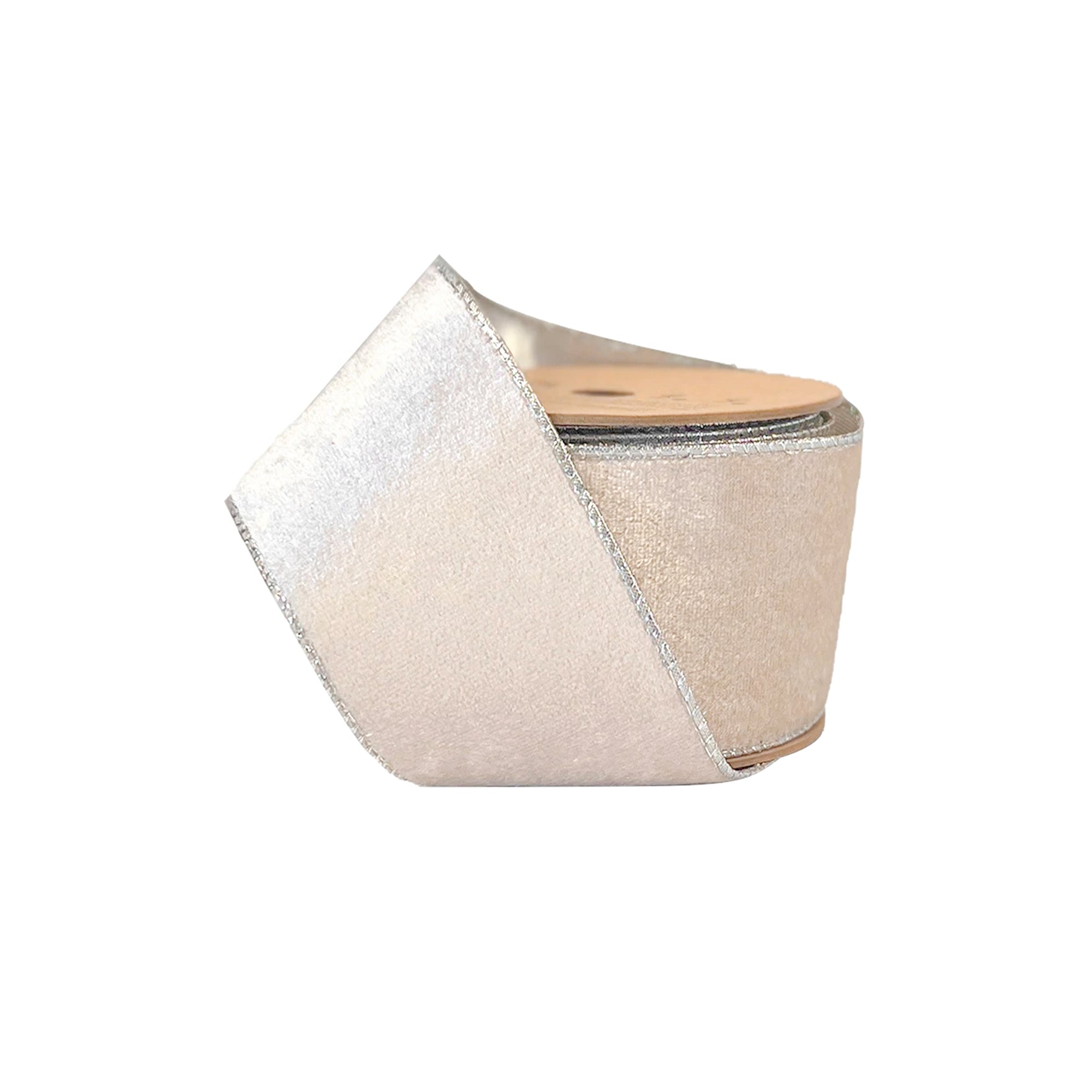 2 1/2"Reversible Velvet/Lurex Wired Ribbon | Champagne/Silver