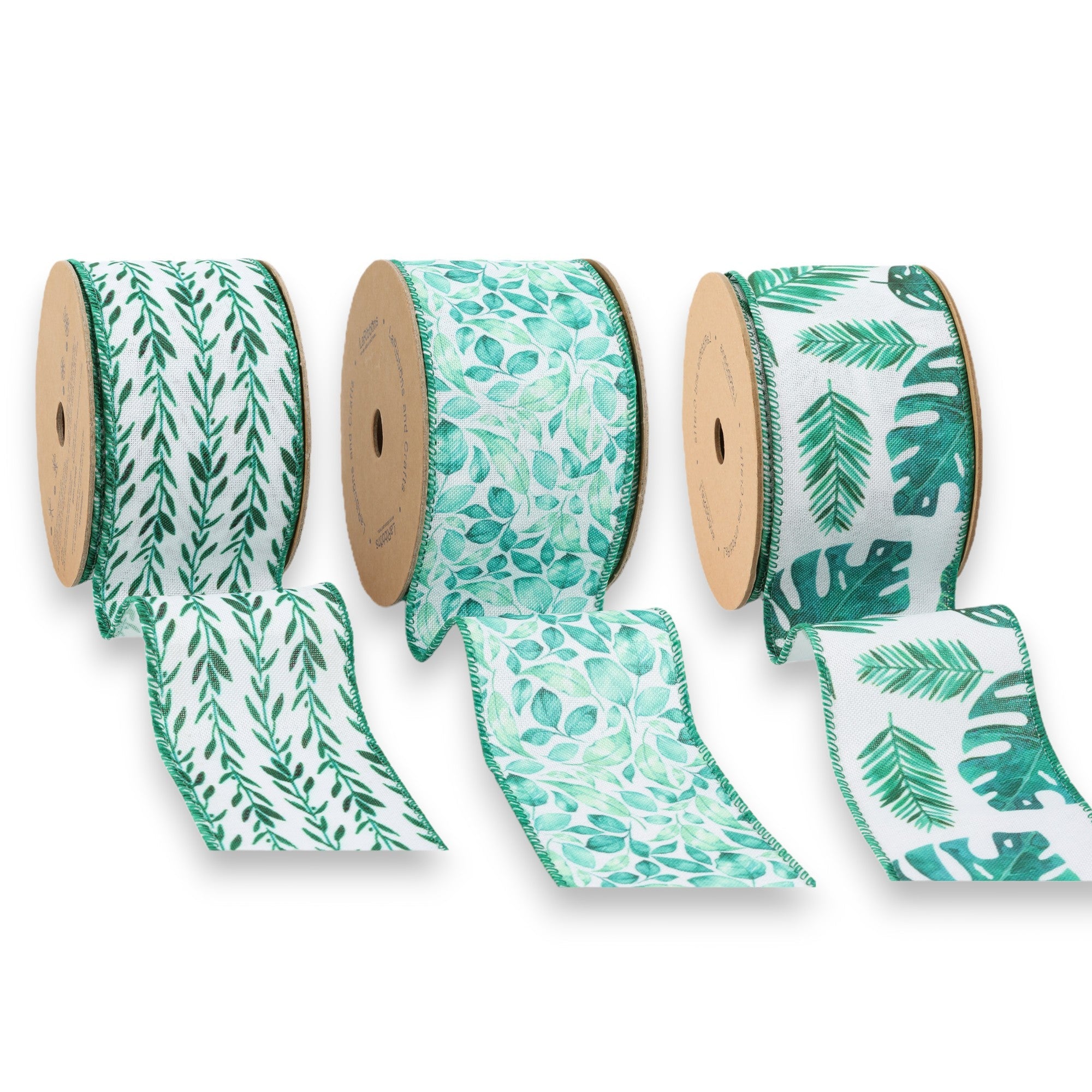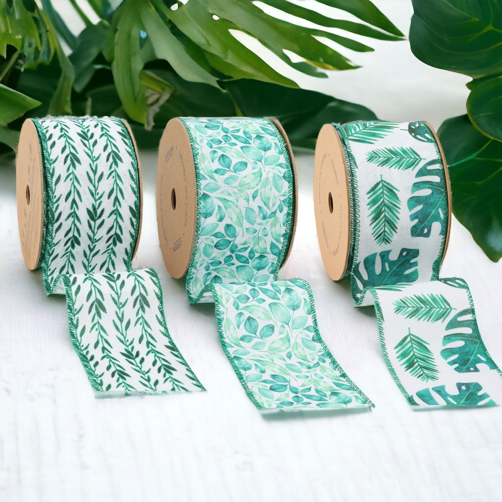 2.5" Tropical Vines/Monstera/Leaves Wired Ribbon Bundle - 3 Rolls/30 Yards Total
