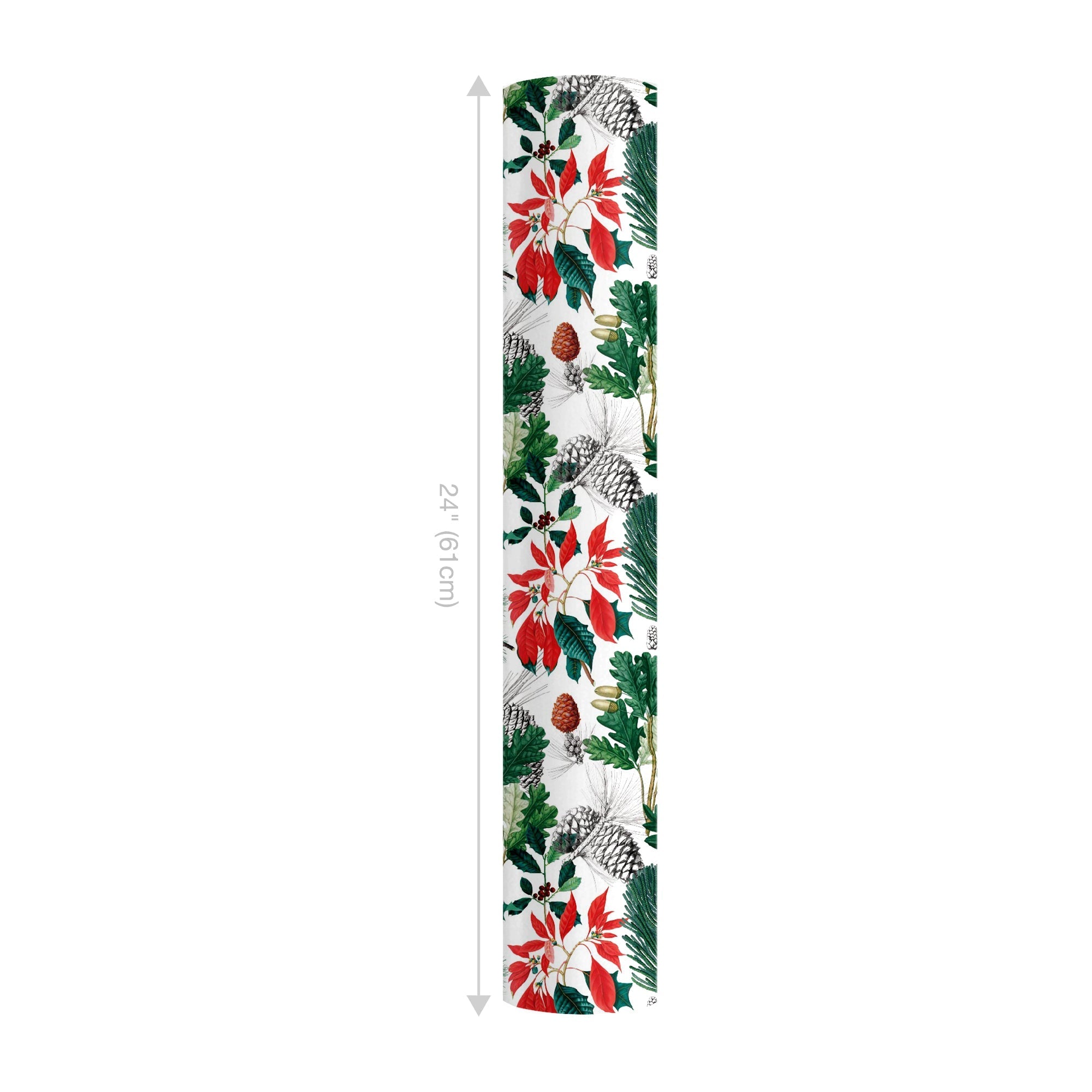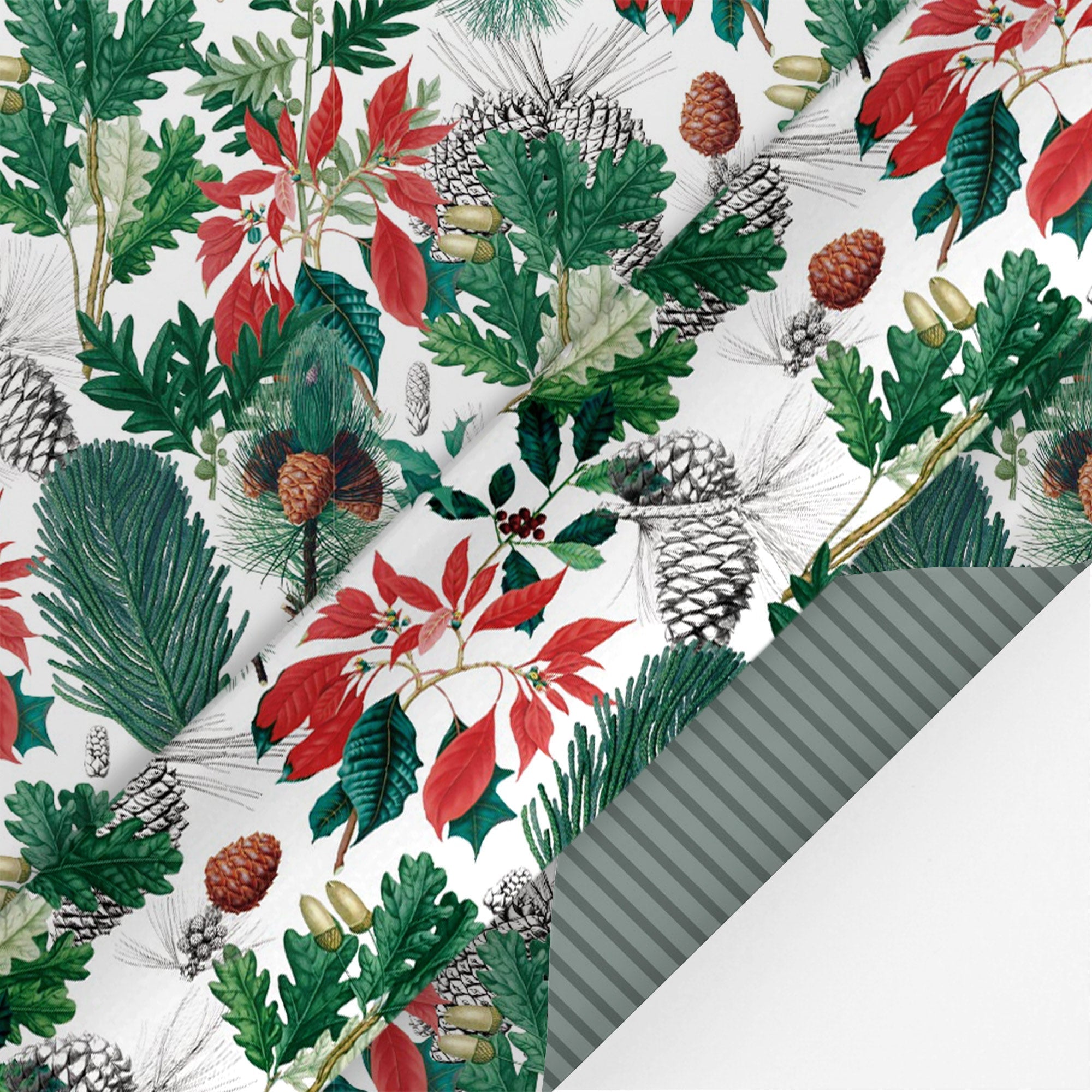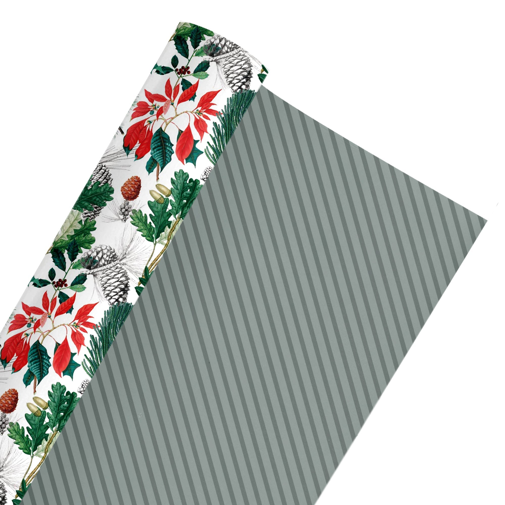 • Elegant Holiday Botanical Design – One side features a festive botanical print with seasonal greenery, perfect for sophisticated gift wrapping.