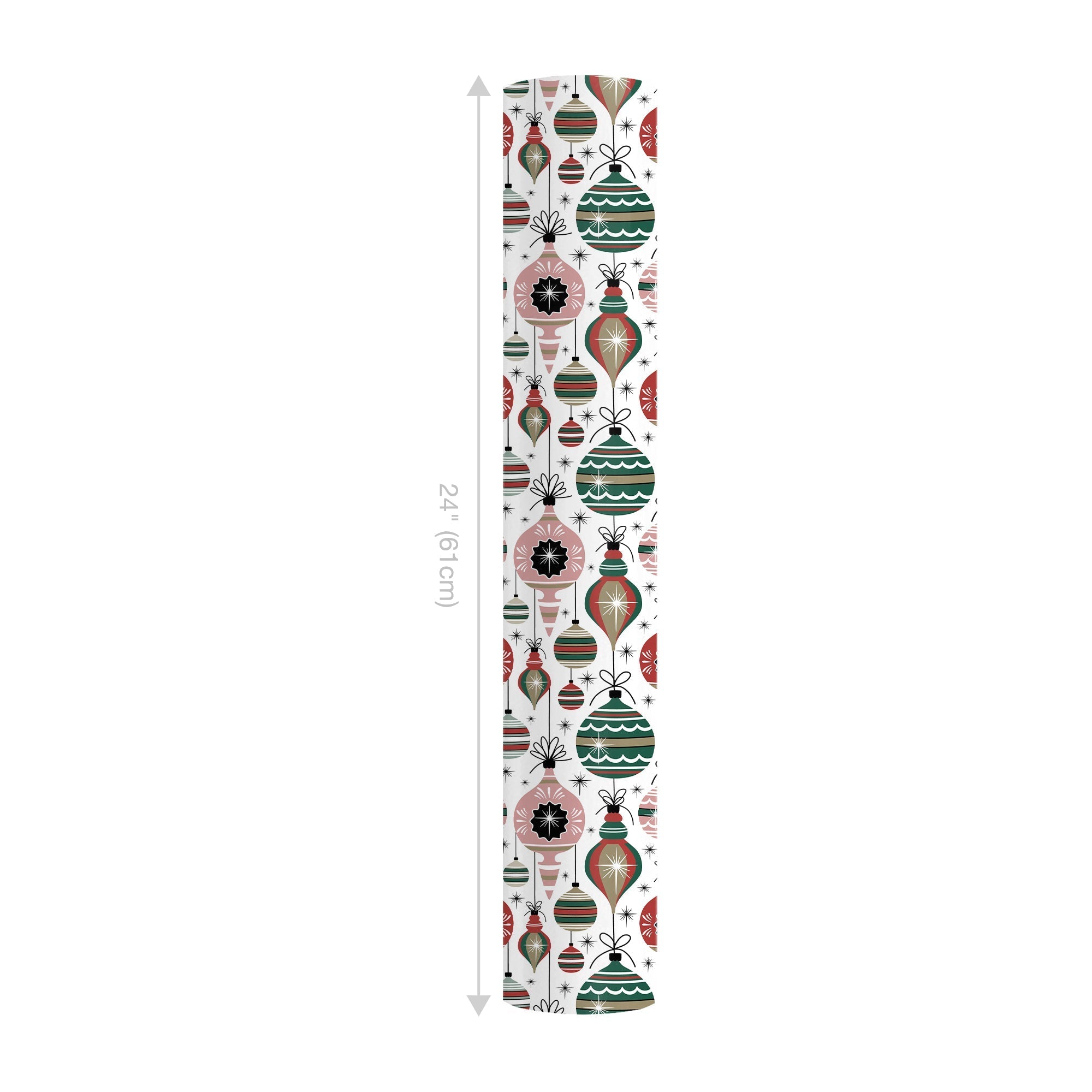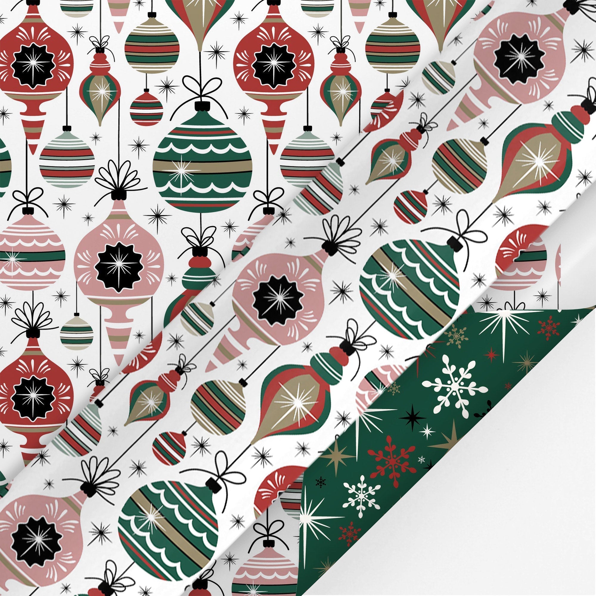 24" x 417" Reversible Holiday Wrapping Paper Half Ream | Retro Ornaments/Retro Snowflakes and Stars