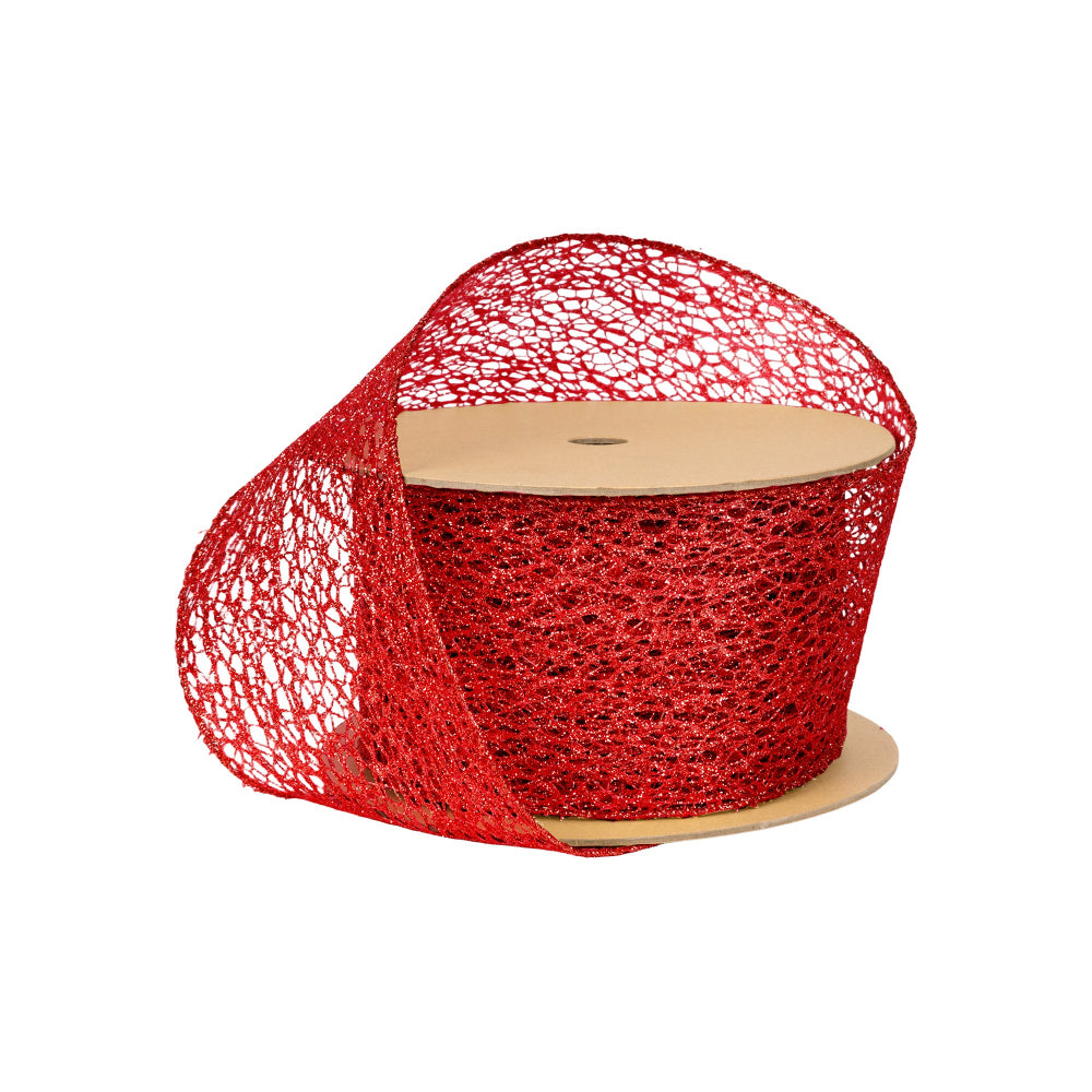 3" Mesh Wired Ribbon | Red | 10 Yard Roll