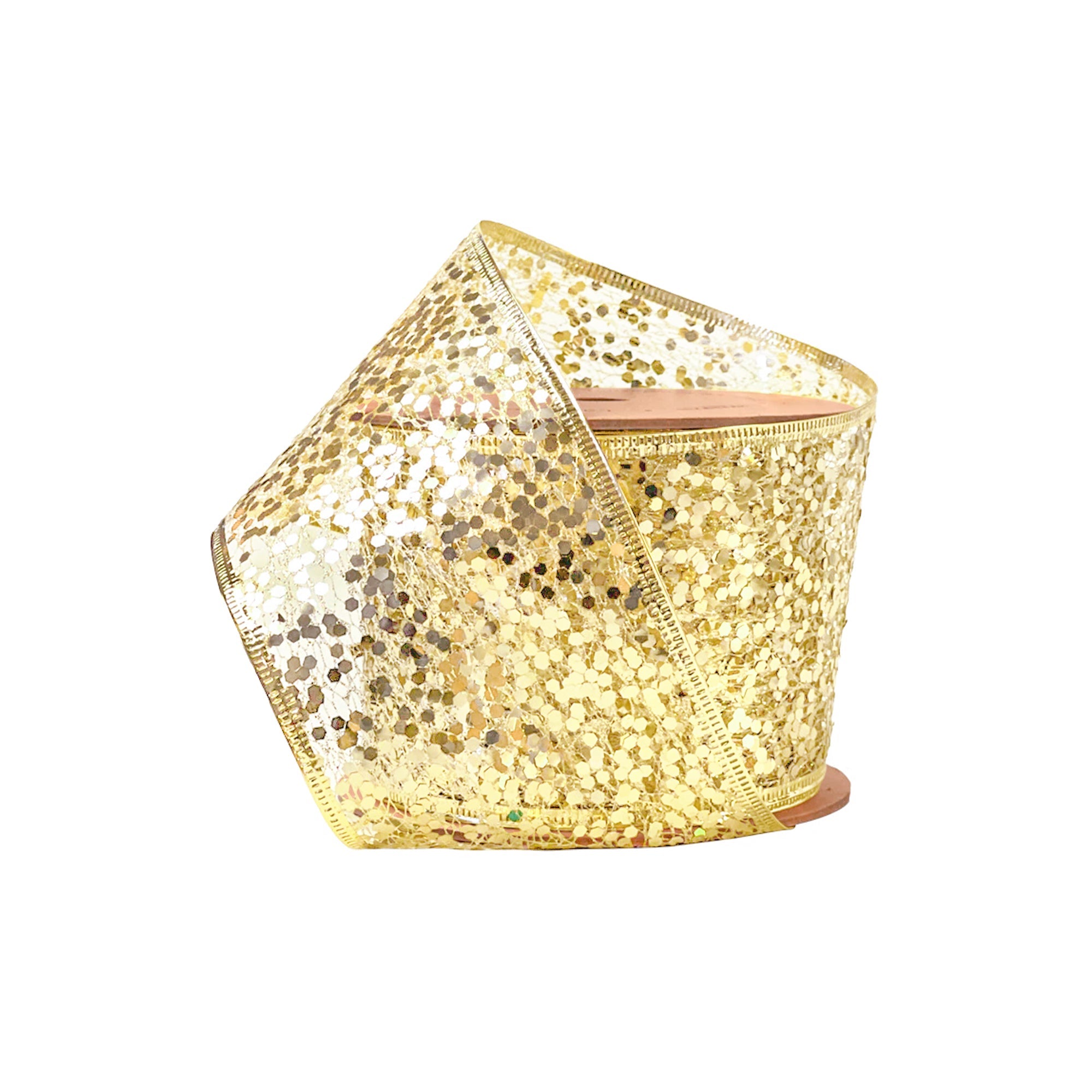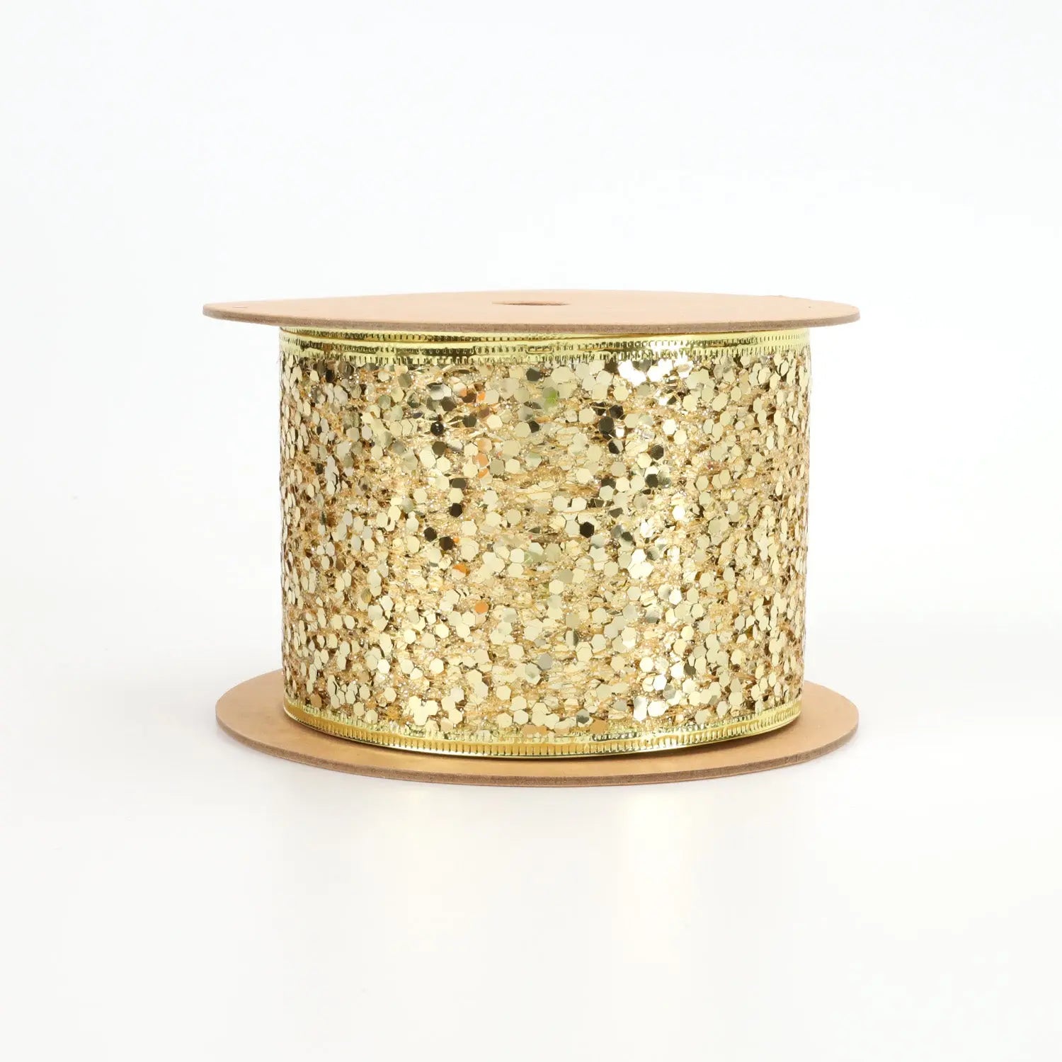 • Dazzling and Glamorous 3" Gold Sequin Wired Ribbon: Our ribbon shines and sparkles with gold sequins, bringing a touch of glamour and sophistication to your special occasions, party decorations, and DIY projects, making a bold statement that is sure to catch everyone's attention. Each roll comes with 10 yards of ribbon, providing ample material to accommodate various decorating needs and creative endeavor.