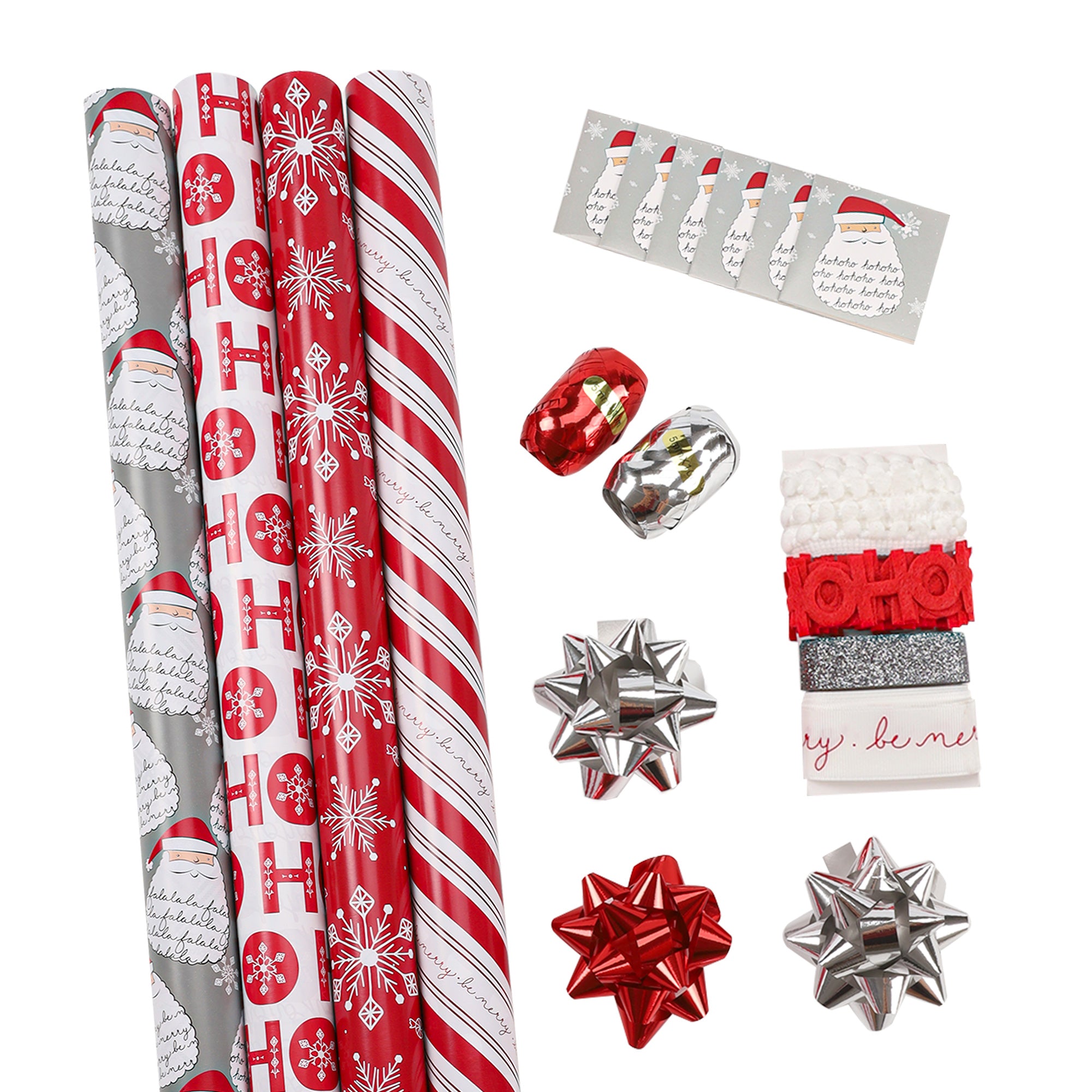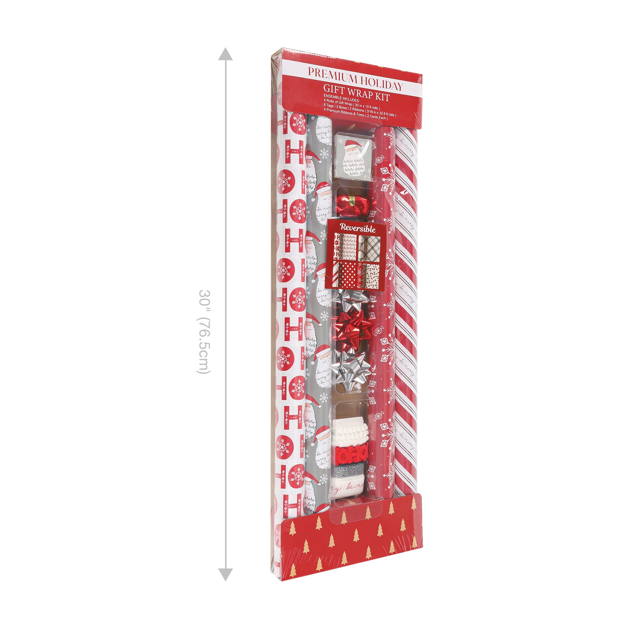 LaRibbons 30" x 10' Christmas Holiday Reversible Gift Wrap Kit | Merry Ho Ho