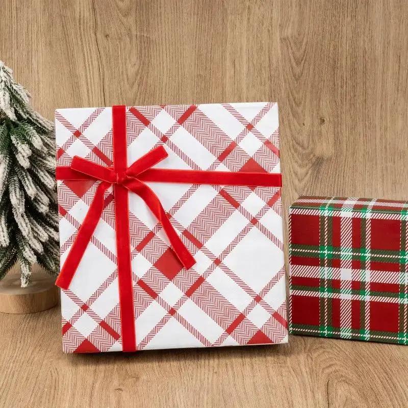 • Festive Variety: Includes Doe Floral/Winter Trees on white, Red/Black/White plaid and Red/White plaid, Holly Leaves & Berries and Red/White stripes, and Solid Green with Merry Christmas text, providing a range of traditional and contemporary styles.