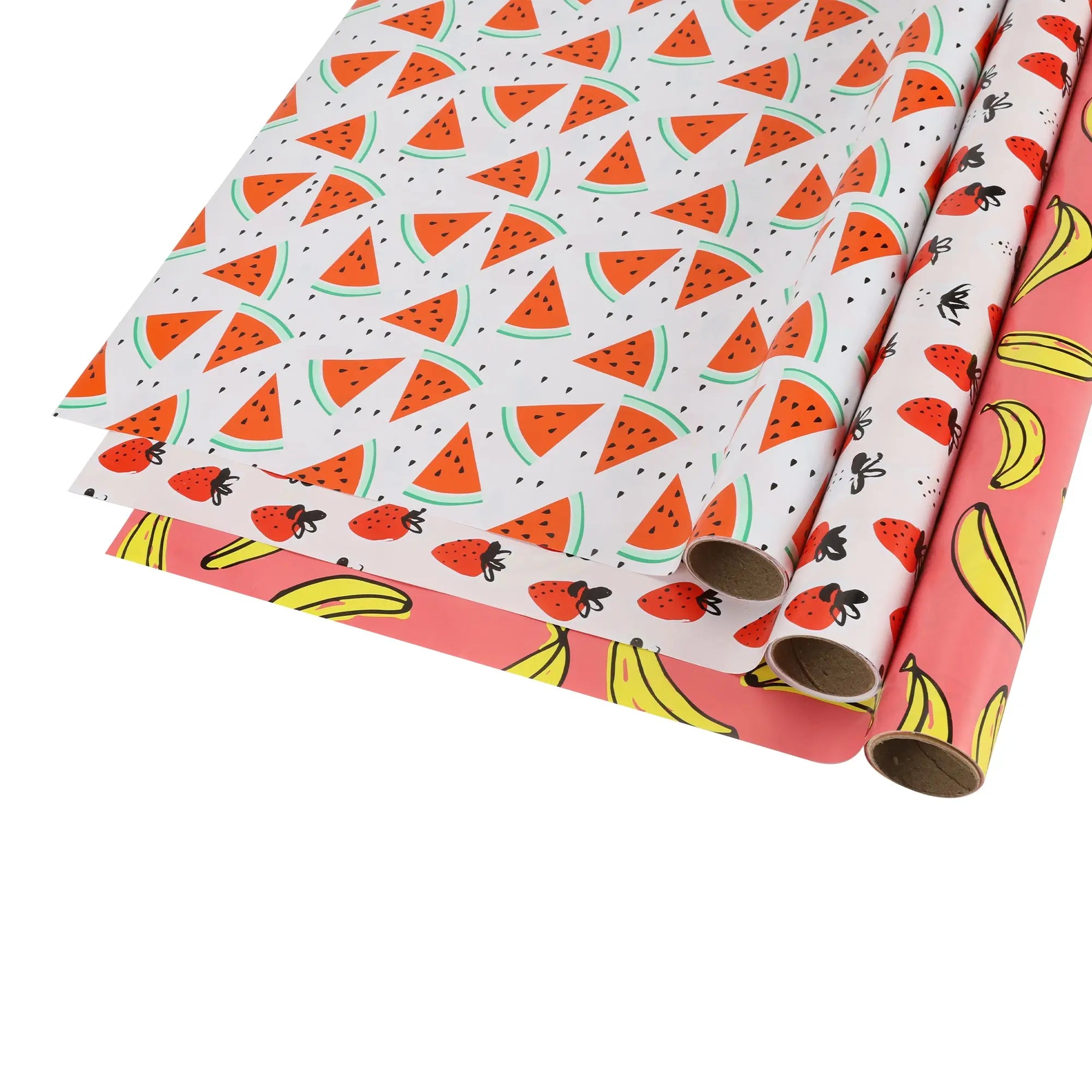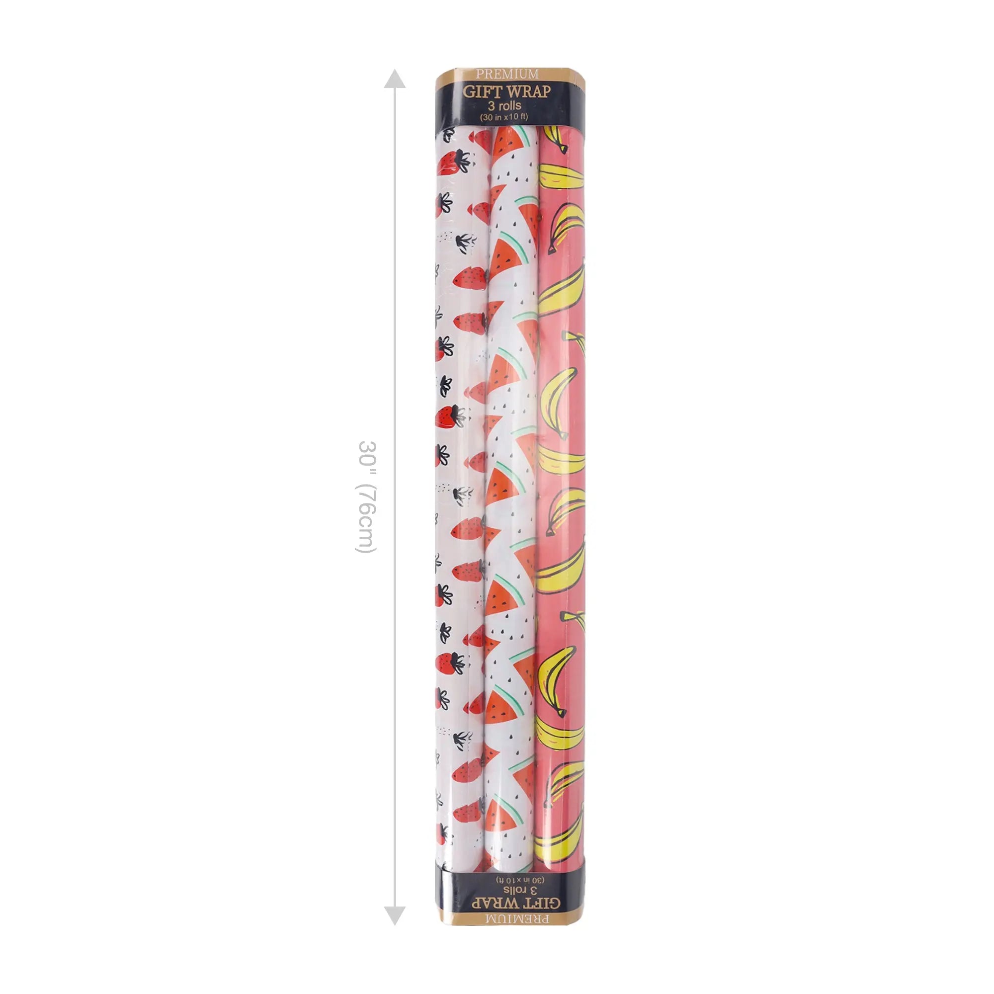 30" x 10' Wrapping Paper Bundle (3-pack) | Strawberry/Watermelon/ Banana