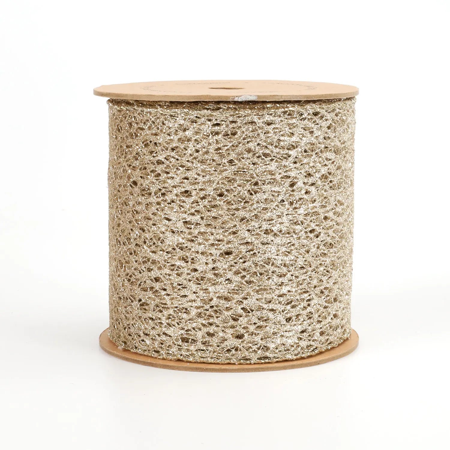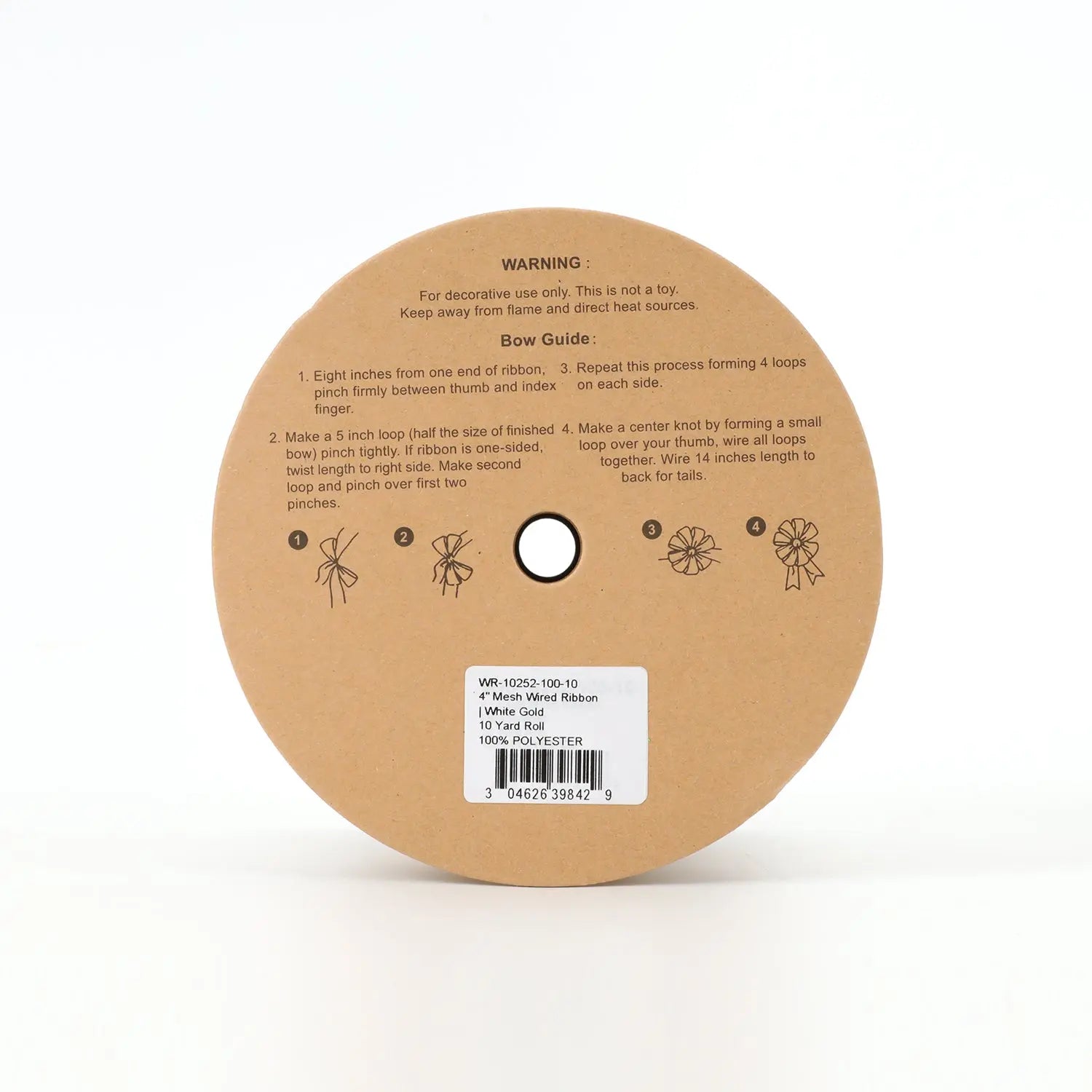 4" Mesh Wired Ribbon | White Gold | 10 Yard Roll