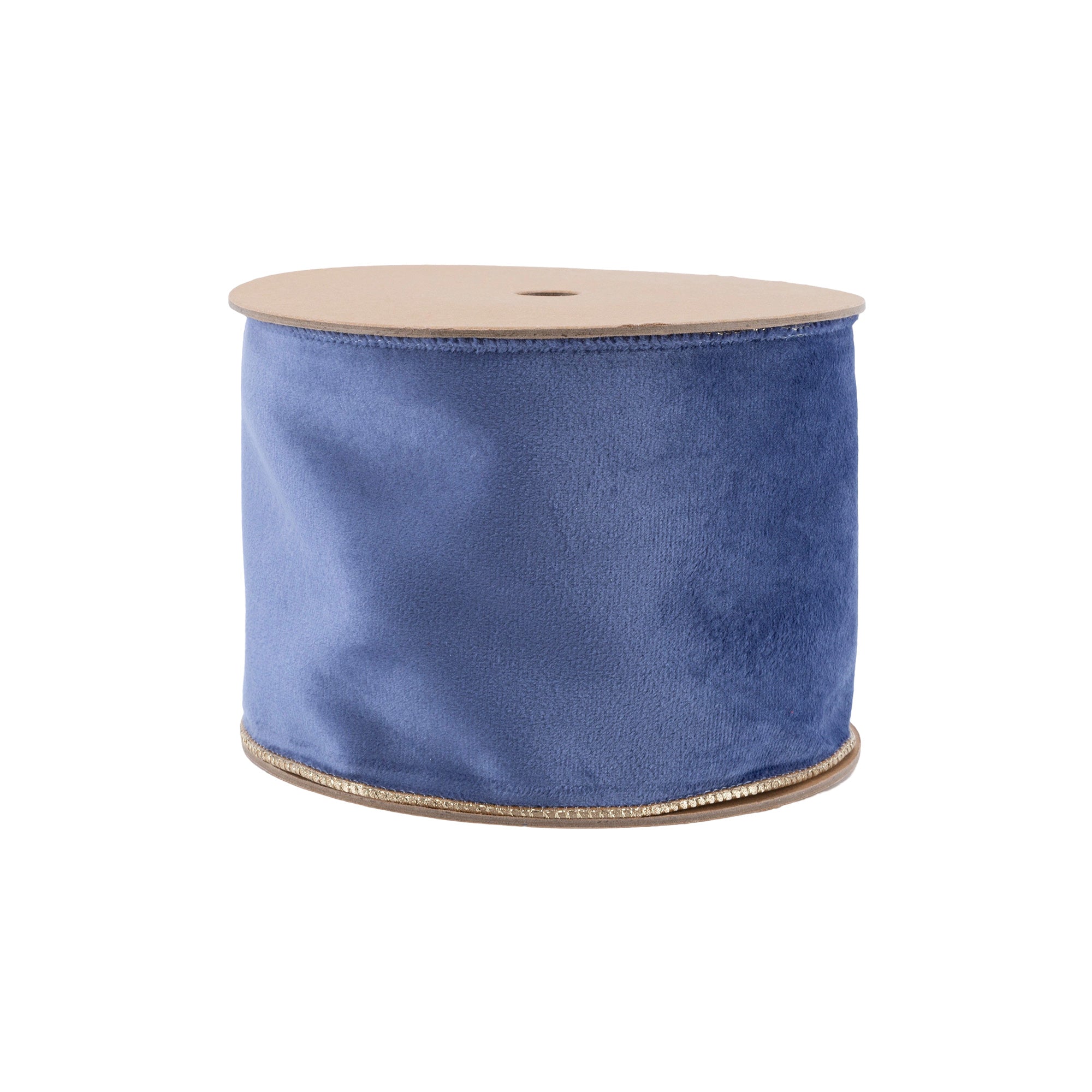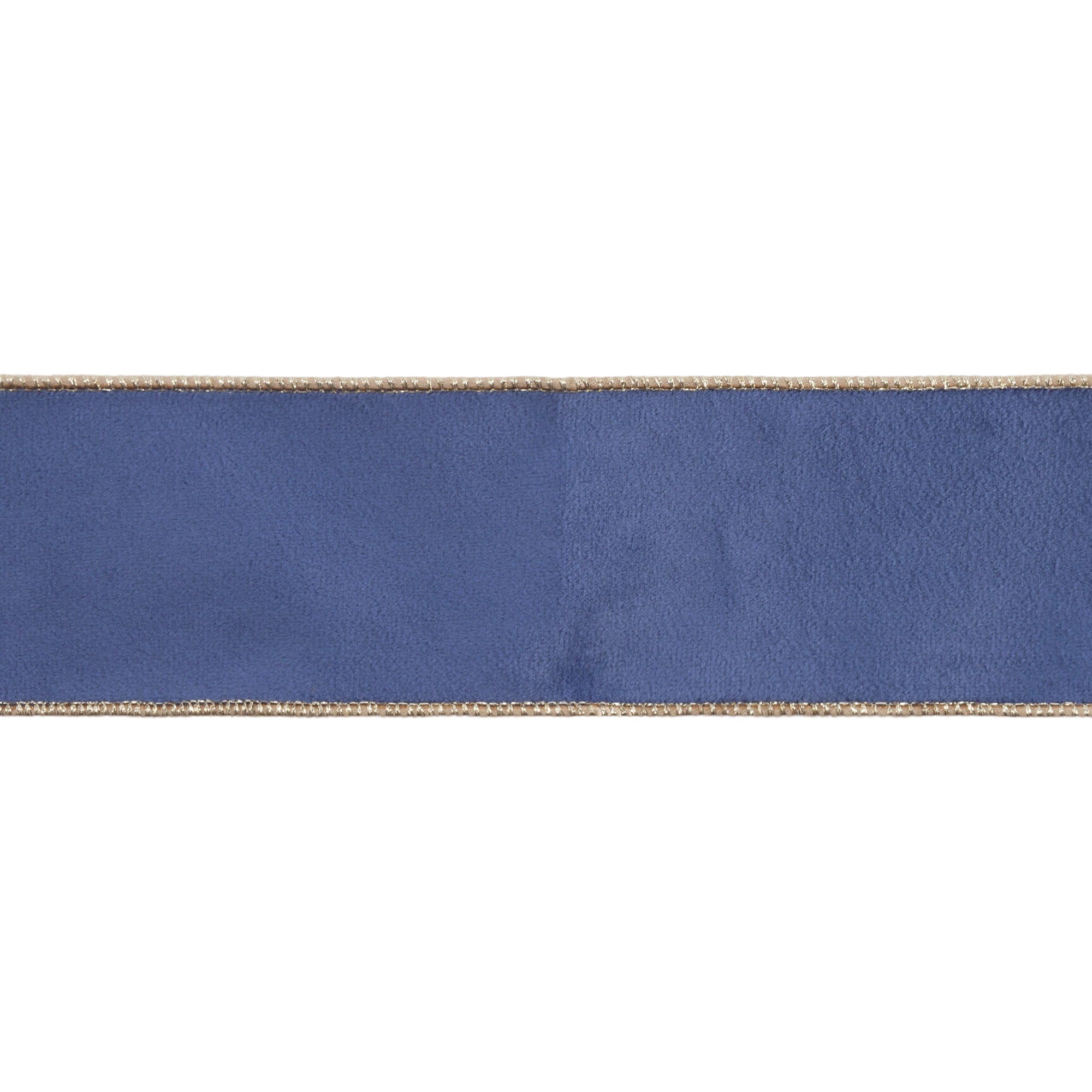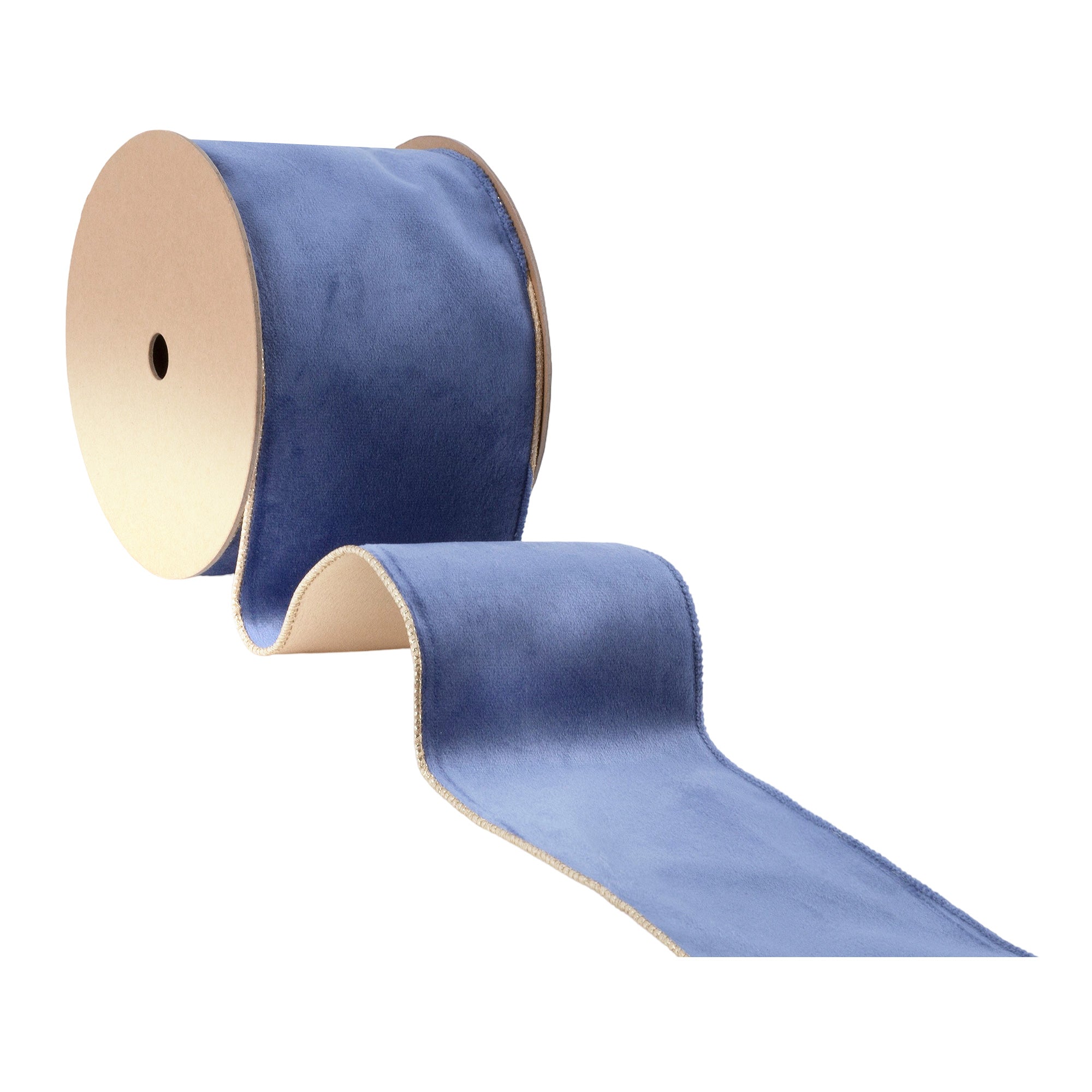 4" Reversible Classic Velvet Wired Ribbon | French Blue/Gold | 10 Yard Roll