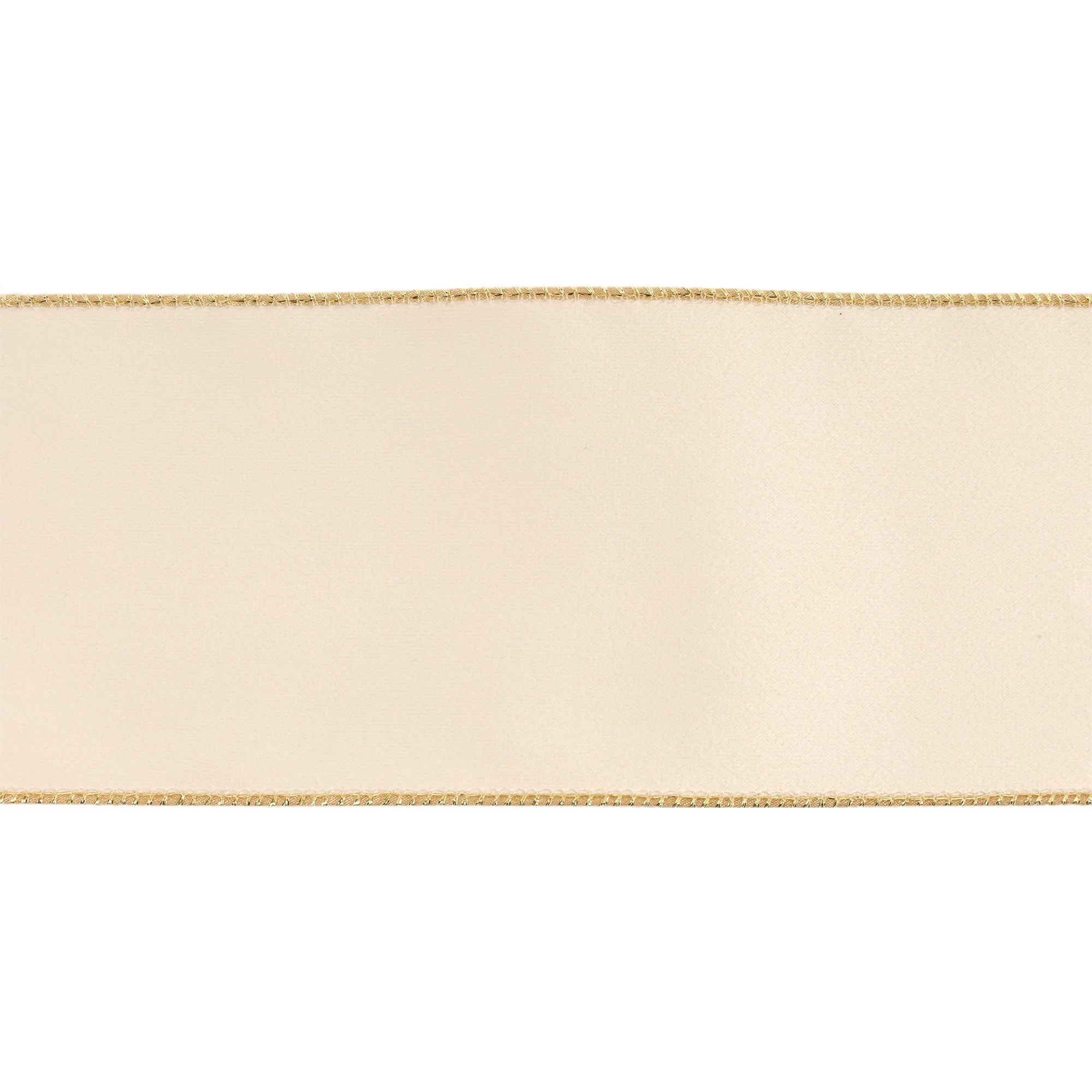 4" Reversible Classic Velvet Wired Ribbon | Ivory/Gold | 10 Yard Roll