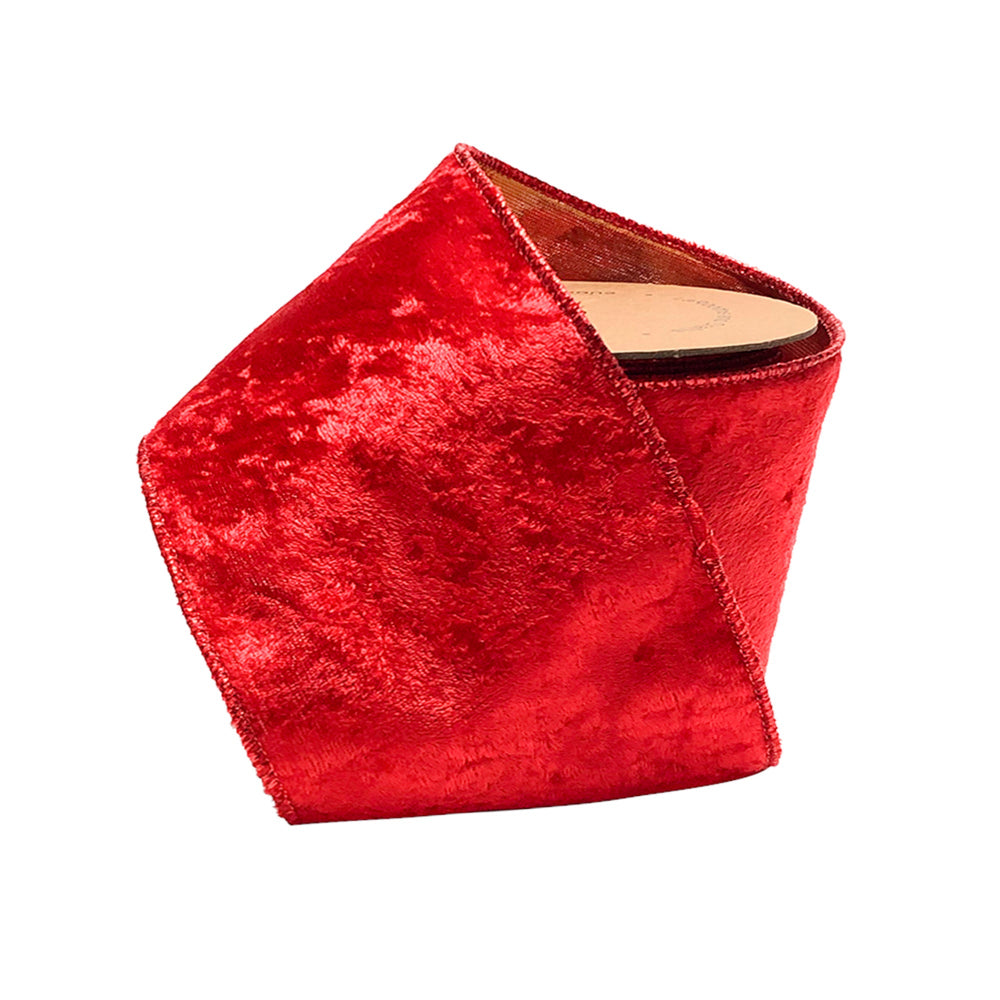 4" Reversible Velvet/Lurex Wired Ribbon | Red/Gold | 10 Yard Roll