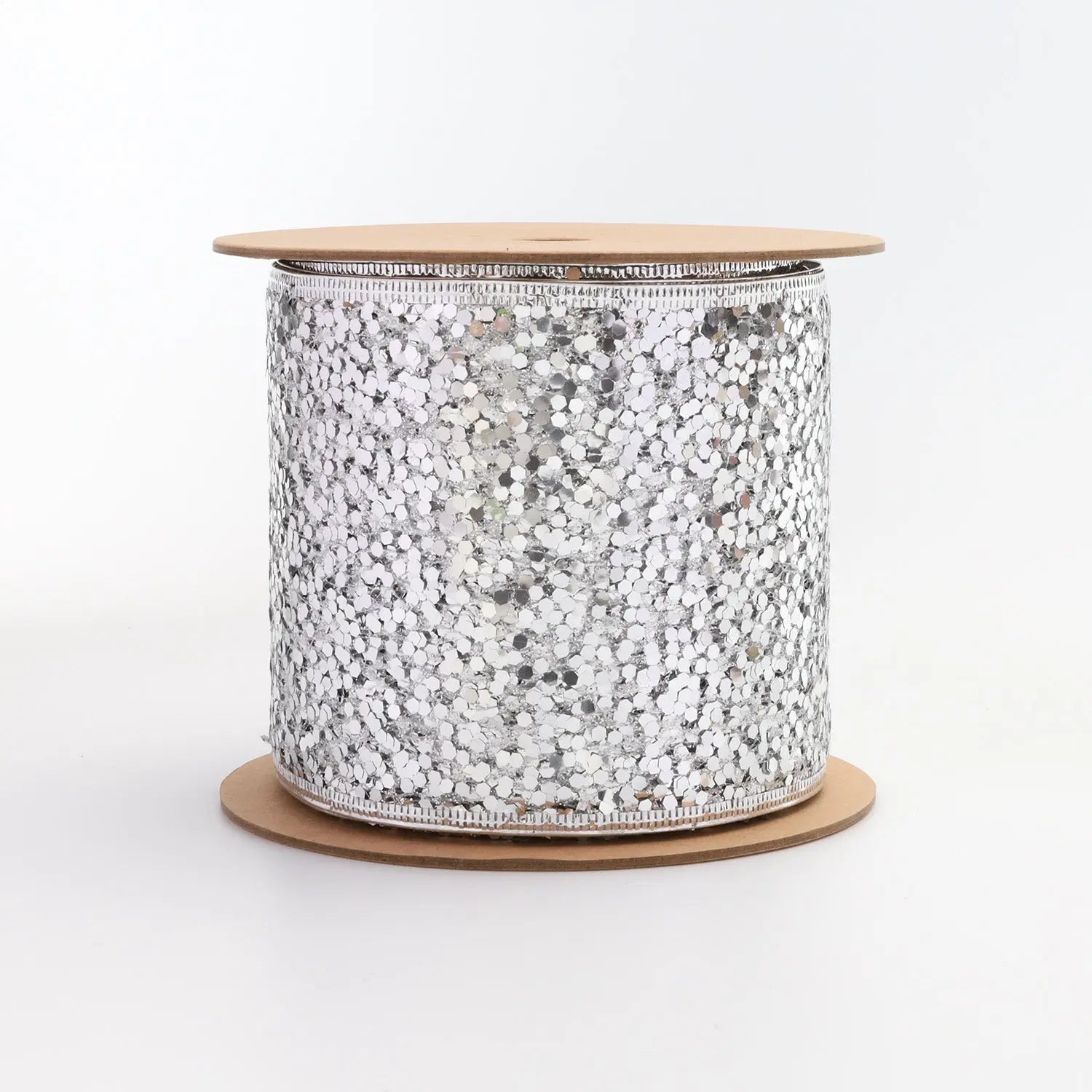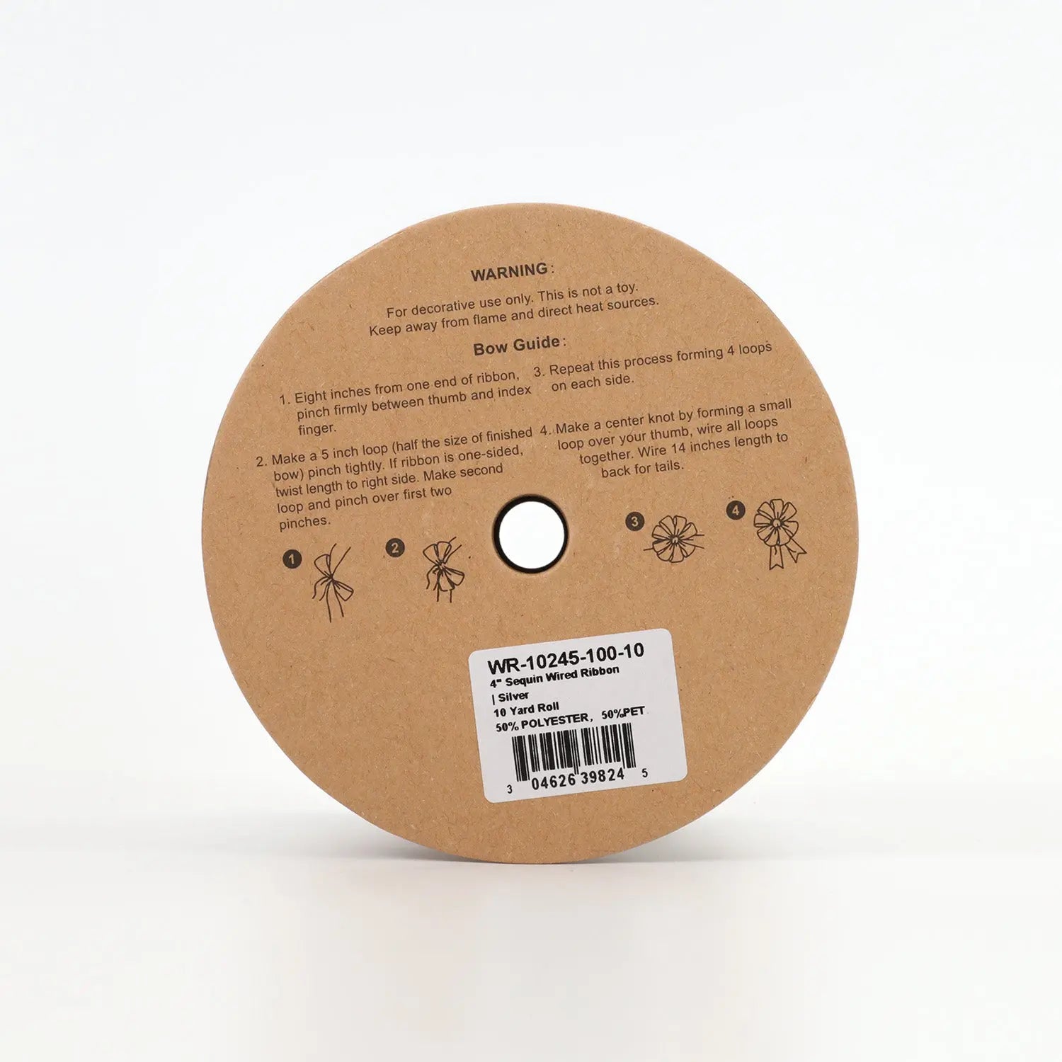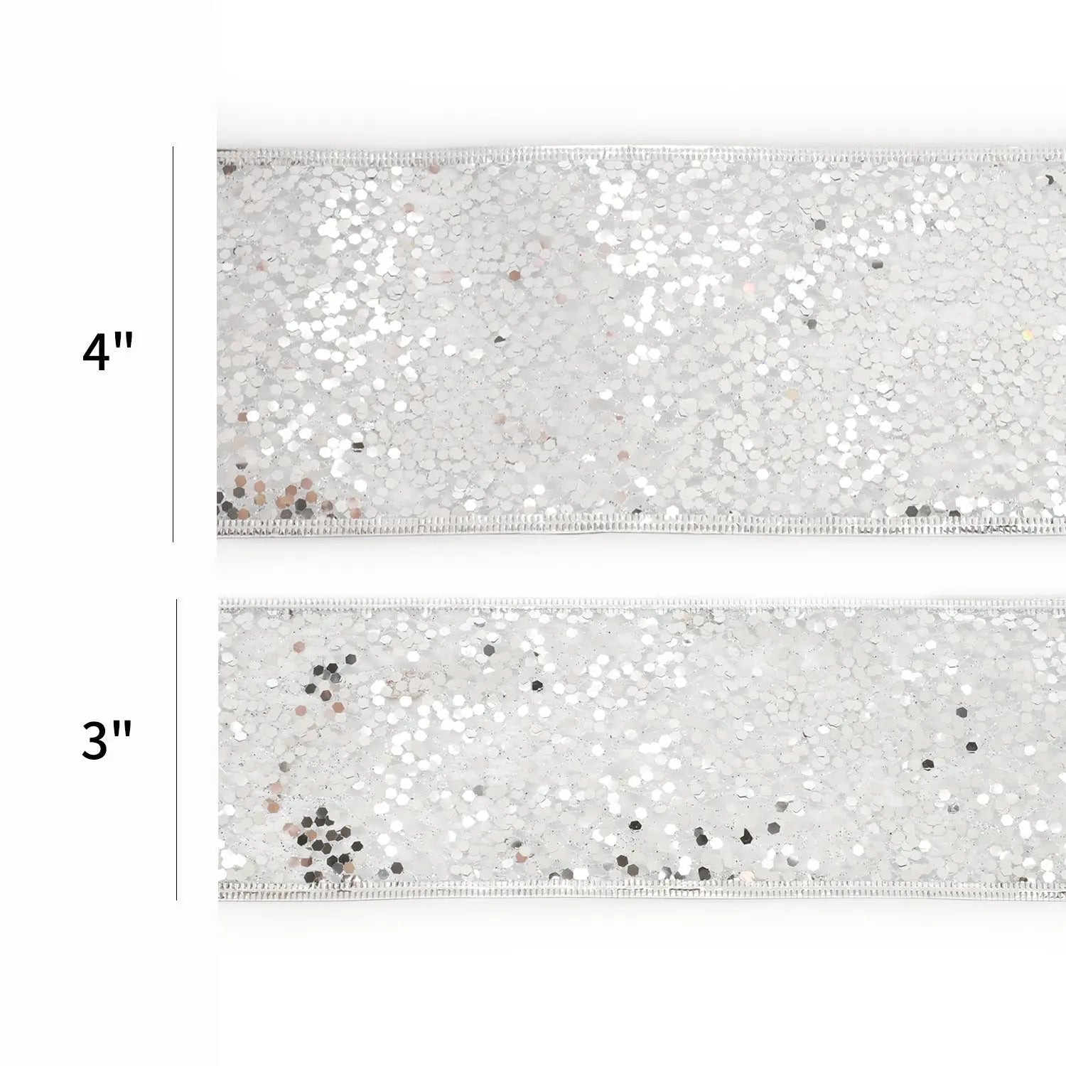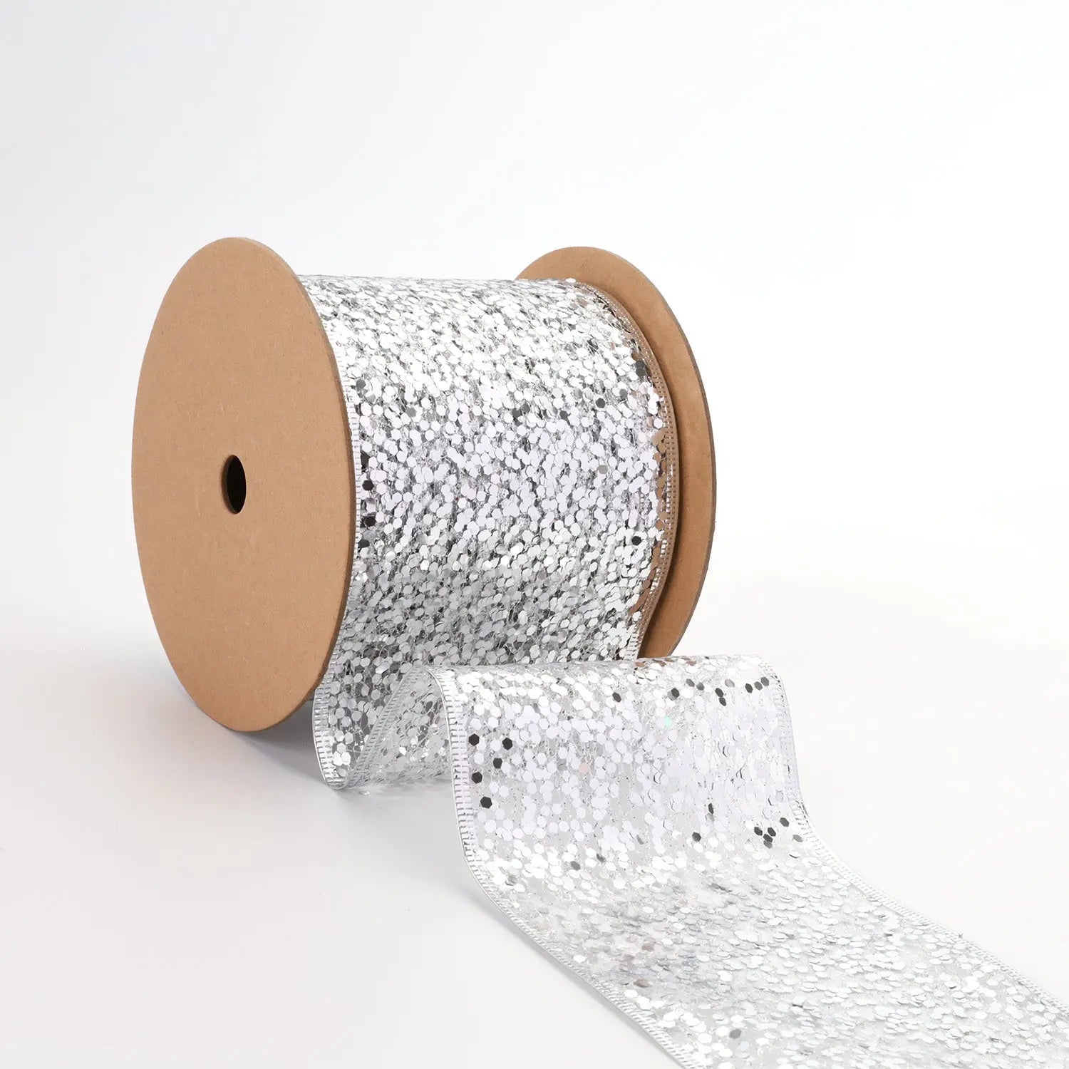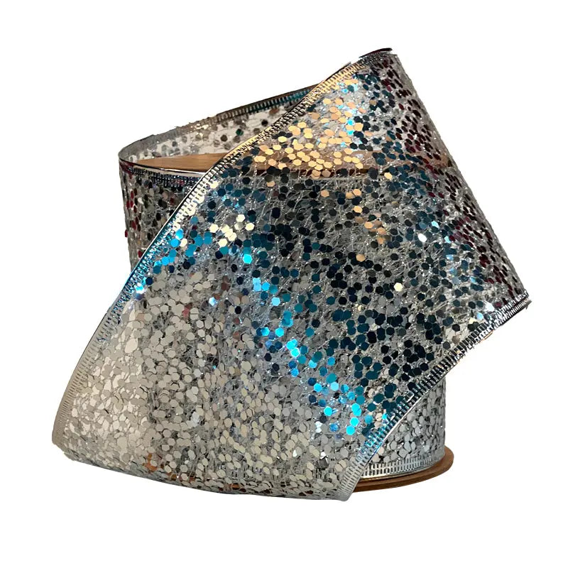 4" Sequin Wired Ribbon | Silver | 10 Yard Roll