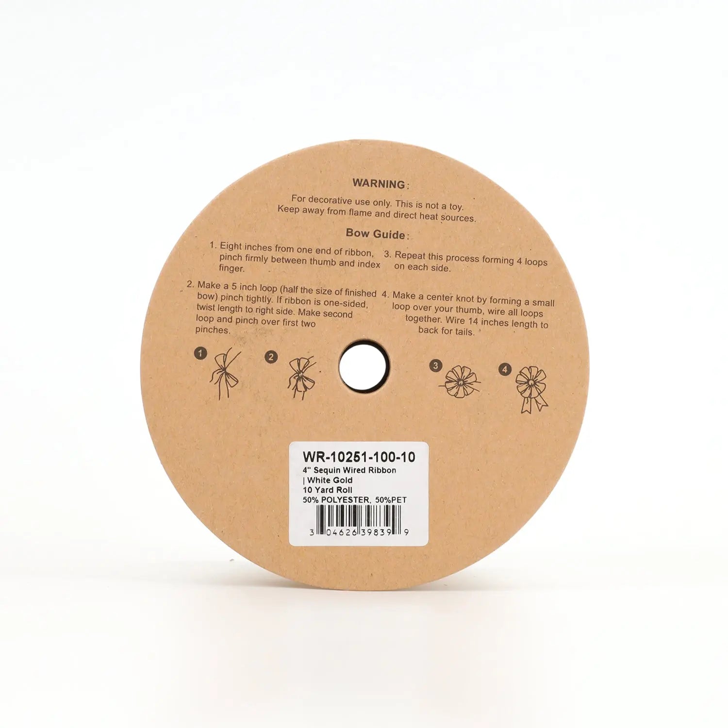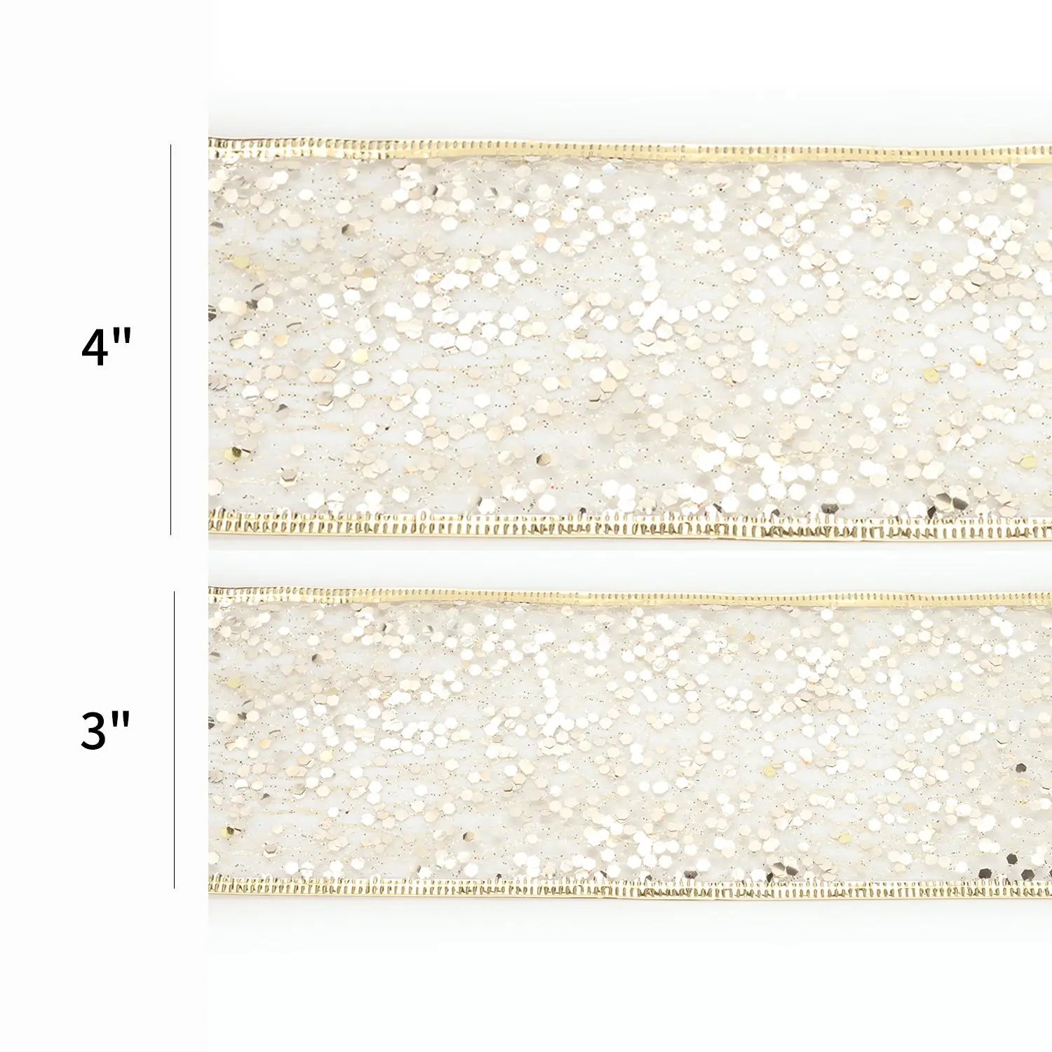 4" Sequin Wired Ribbon | White Gold | 10 Yard Roll
