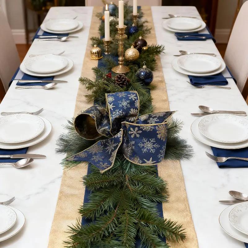 • Festive Design: Adorned with intricate blue snowflake patterns, this 4" wired jacquard ribbon adds a cheerful touch to any holiday decor or gift wrapping.