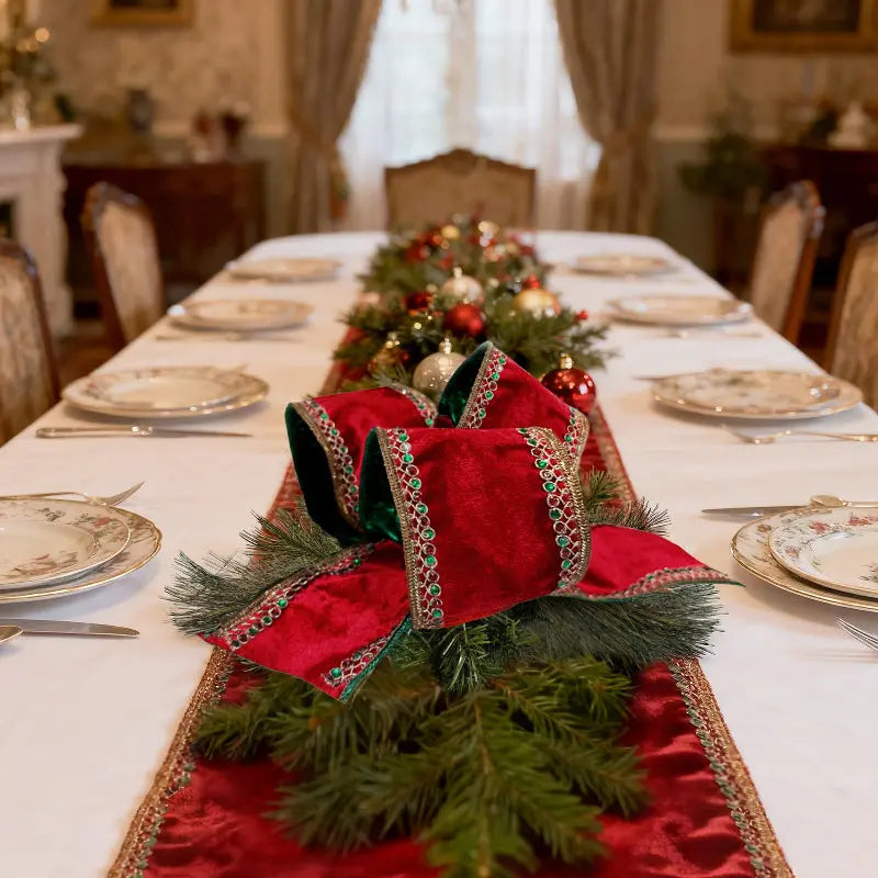 • Eye-Catching Appeal: Elevate your presentations with the bold and striking contrast of red velvet and green backing, accented by jeweled trim, making it the perfect choice for holiday gift wrapping, festive décor, floral arrangements, and beyond.