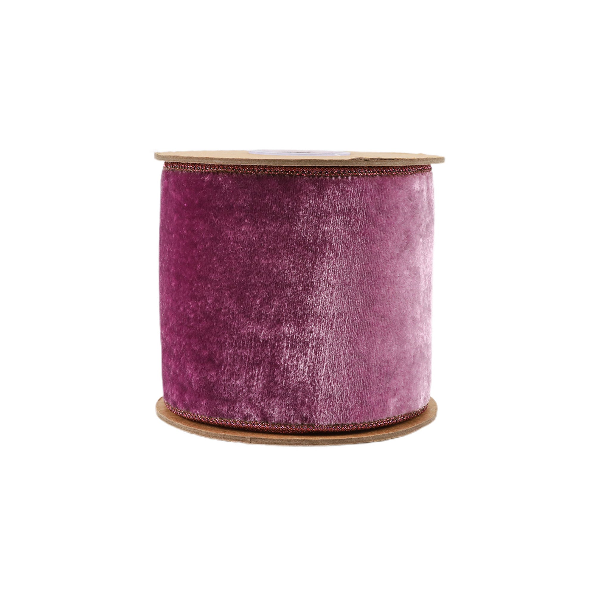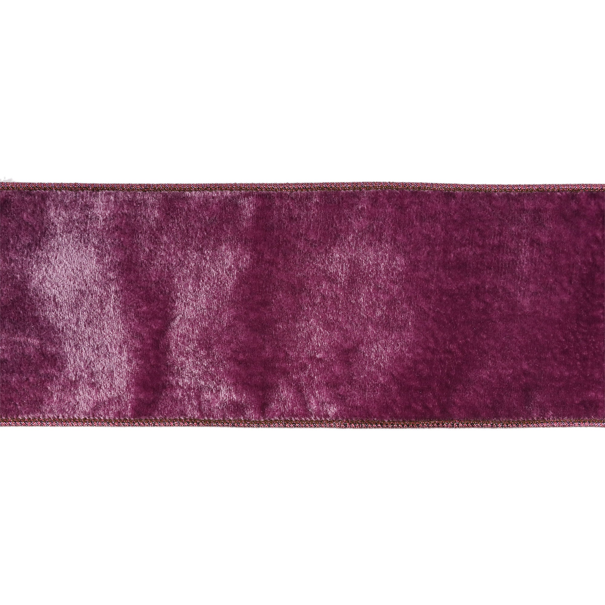 4" Wired Premium Velvet Ribbon | Purple w/ Purple Metallic Dupioni Backing | 5 Yard Roll