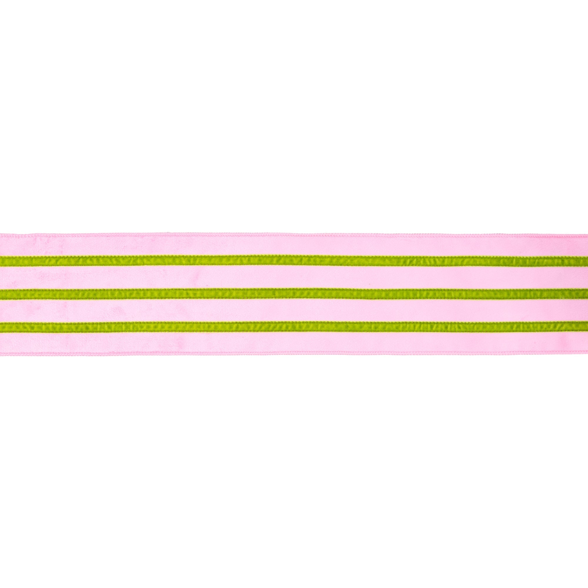 4" Wired Velvet Ribbon w/ Trim | Pink w/ Green Trim | 10 Yard Roll