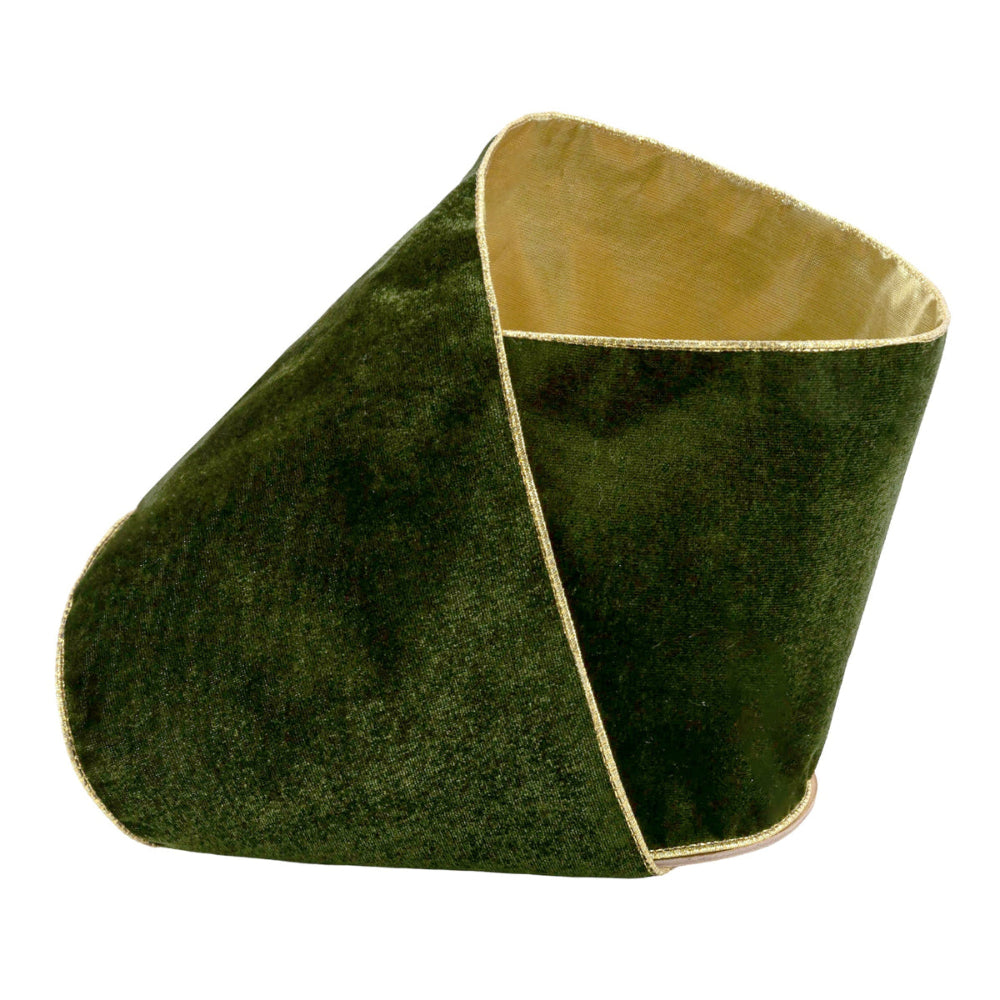 • Luxurious reversible velvet ribbon in a deep forest green hue, perfect for elegant holiday and seasonal decor.