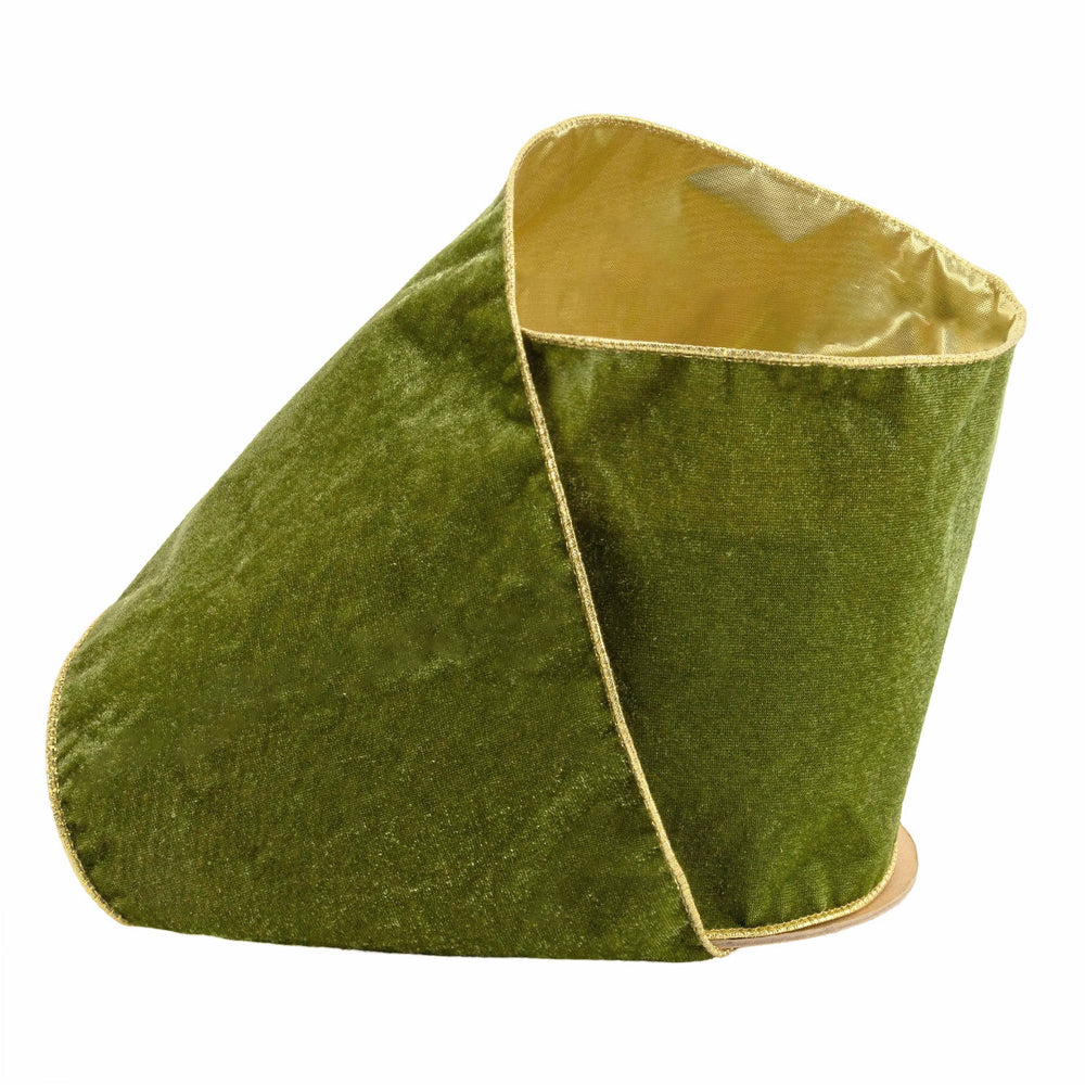• Luxurious reversible velvet ribbon in a rich moss hue, perfect for elegant seasonal decor.