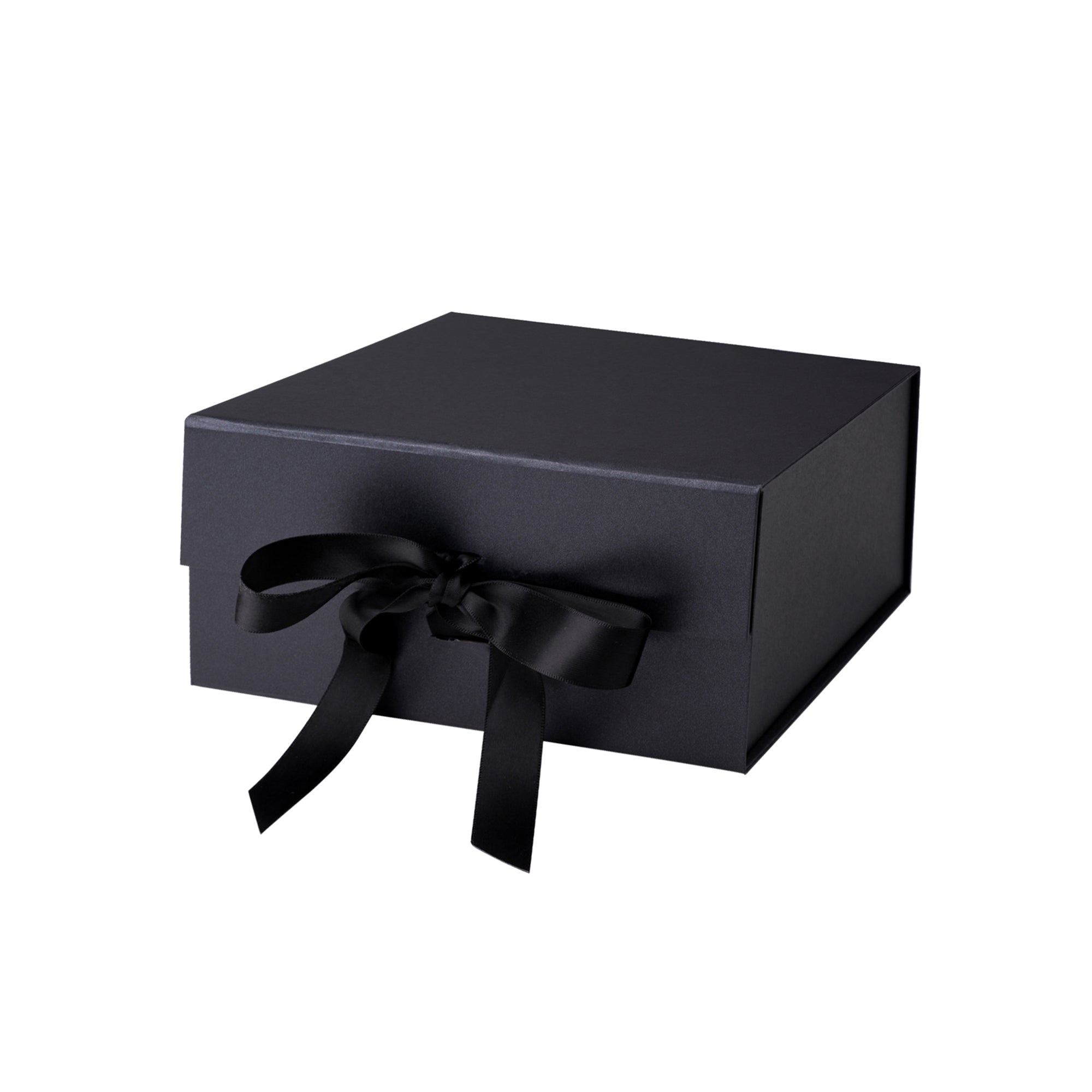 8" x 8" x 4" Collapsible Magnetic Gift Box with a Satin Ribbon- Black
