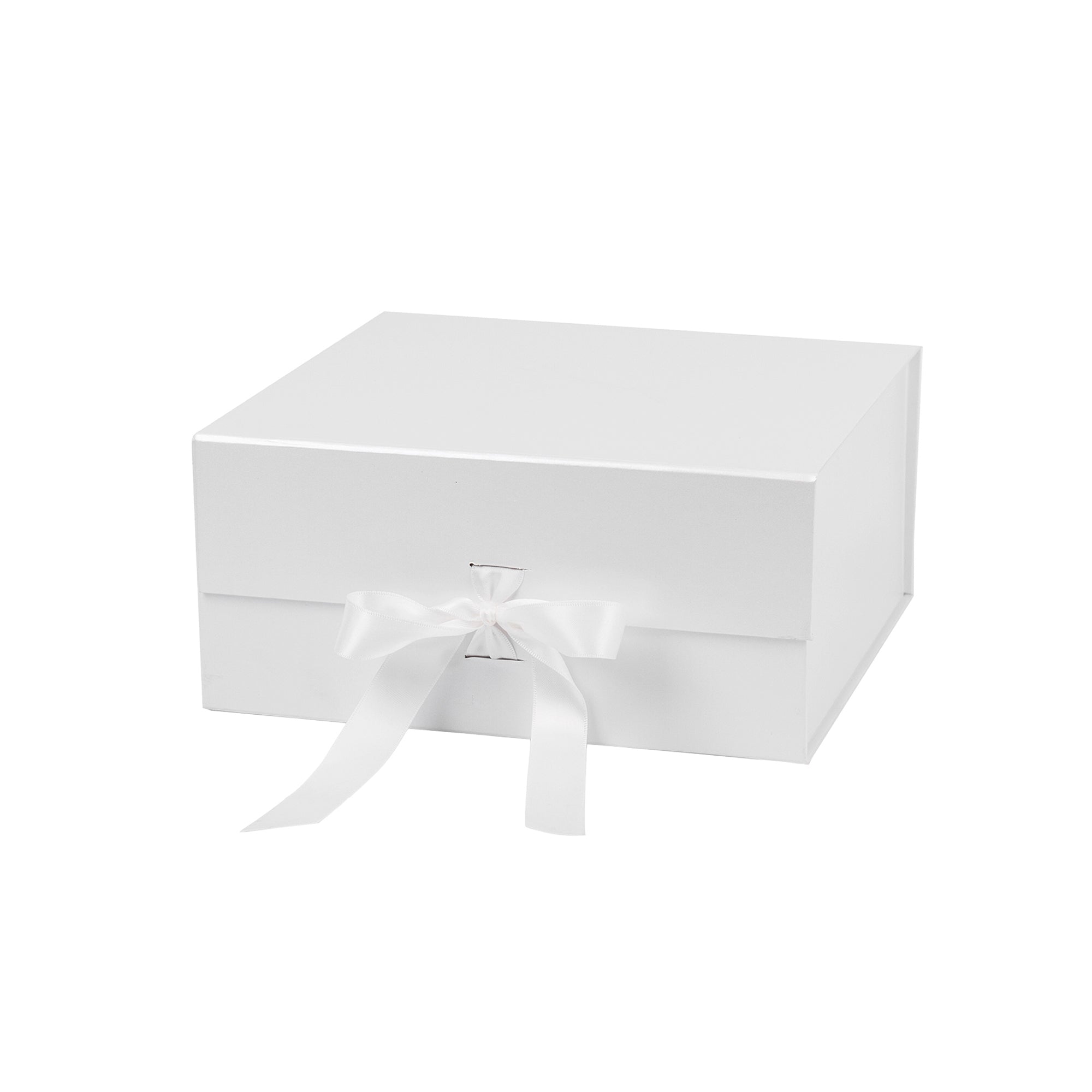 8" x 8" x 4" Collapsible Magnetic Gift Box with a Satin Ribbon- White