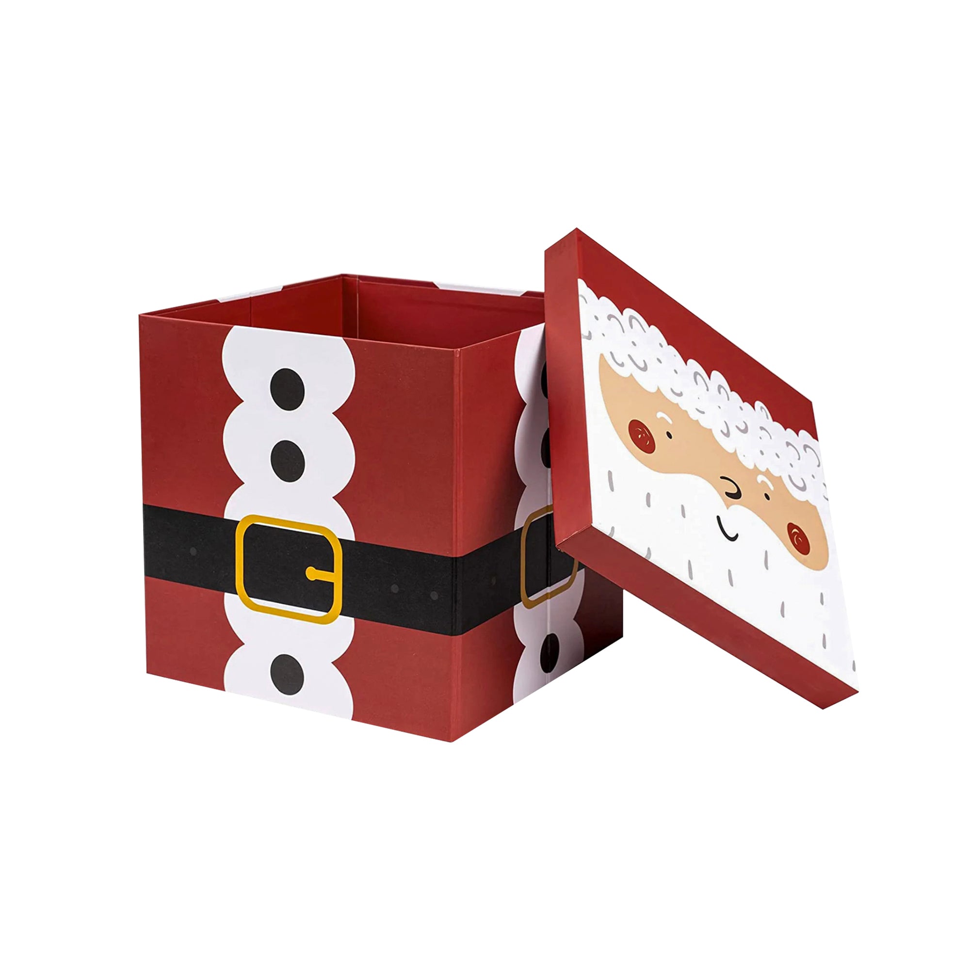 • Festive Santa Claus Design: Our 9" x 9" x 9" collapsible holiday box features a delightful Santa Claus design, perfect for adding a touch of holiday magic to your gift-giving.
