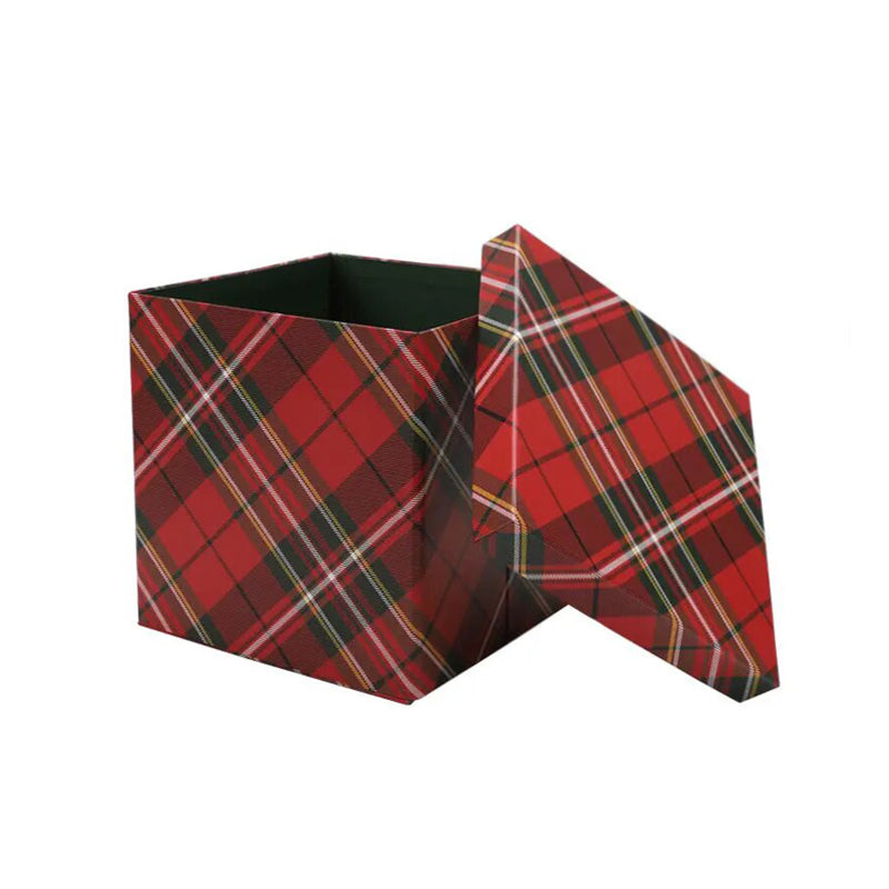 9" x 9" x 9" Collapsable Holiday Gift Box w/ Removable Lid | "Plaid"
