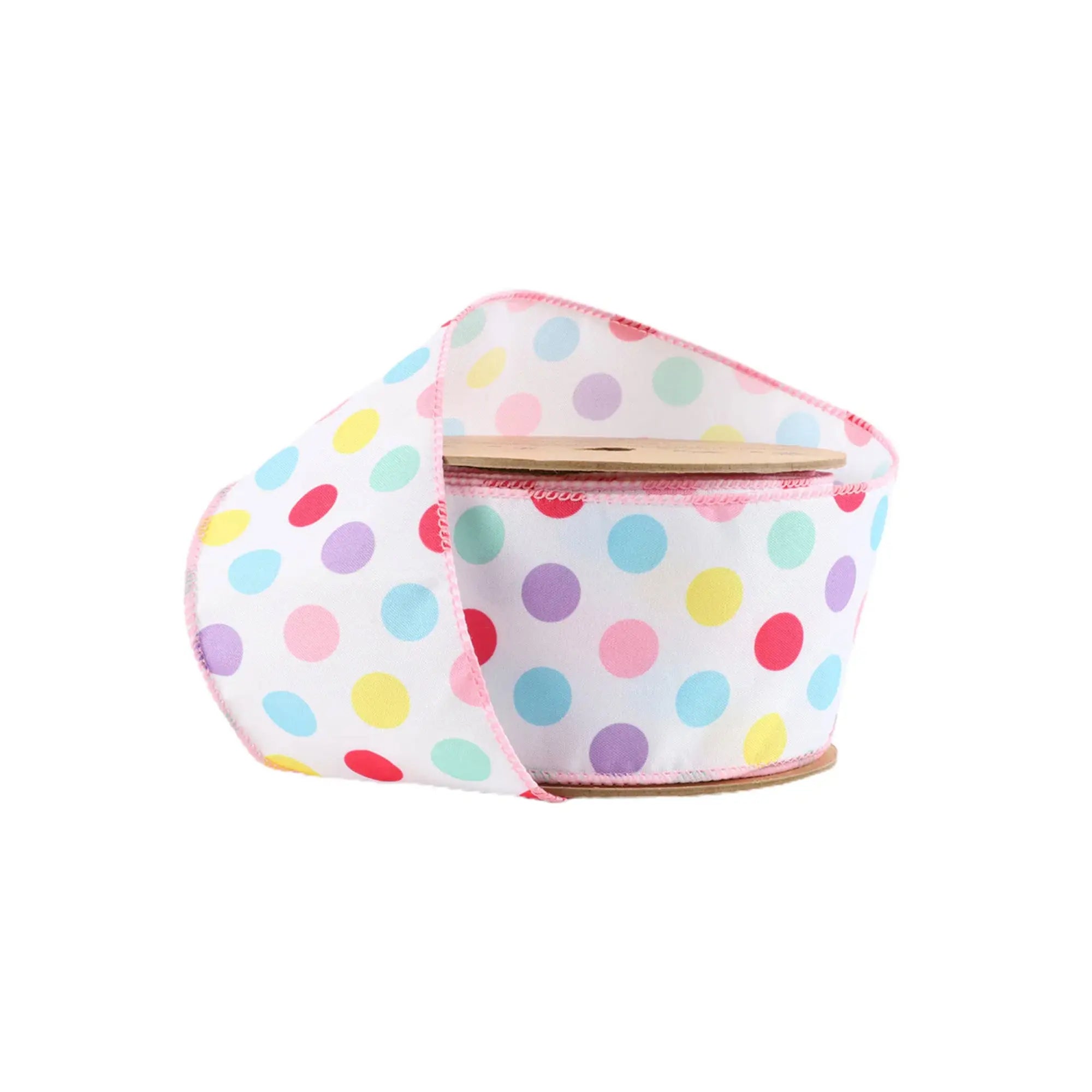 2 1/2" Wired Ribbon | White w/ Pastel Dots | 10 Yard Roll