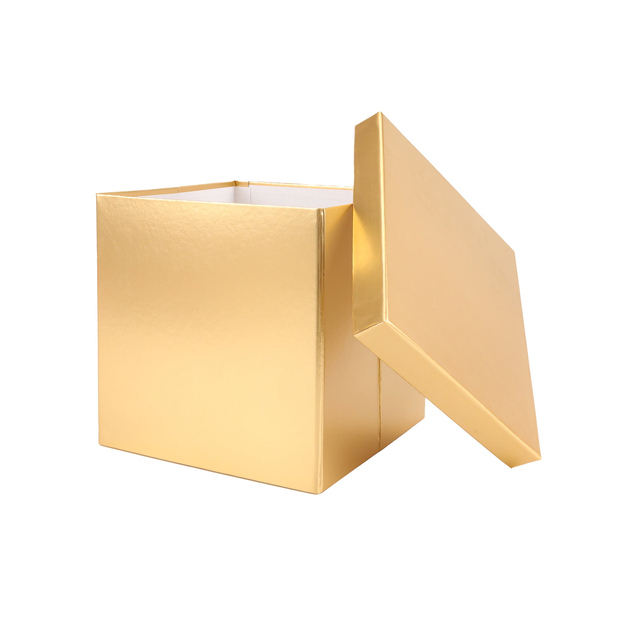 9"x 9" x 9" Collapsable Gift Box w/ Removable Lid | Metallic Matte Gold