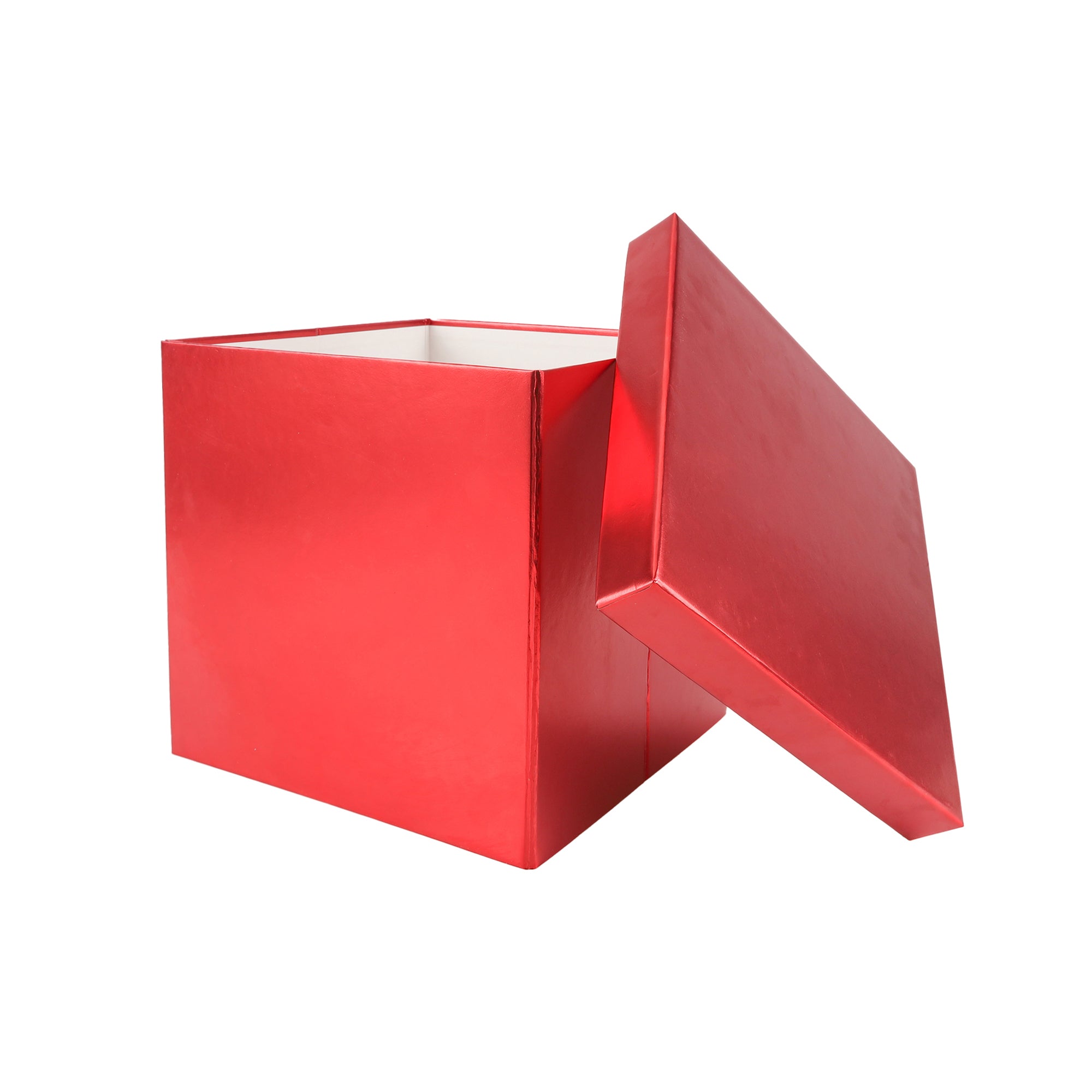 9"x 9" x 9" Collapsable Gift Box w/ Removable Lid | Metallic Matte Red