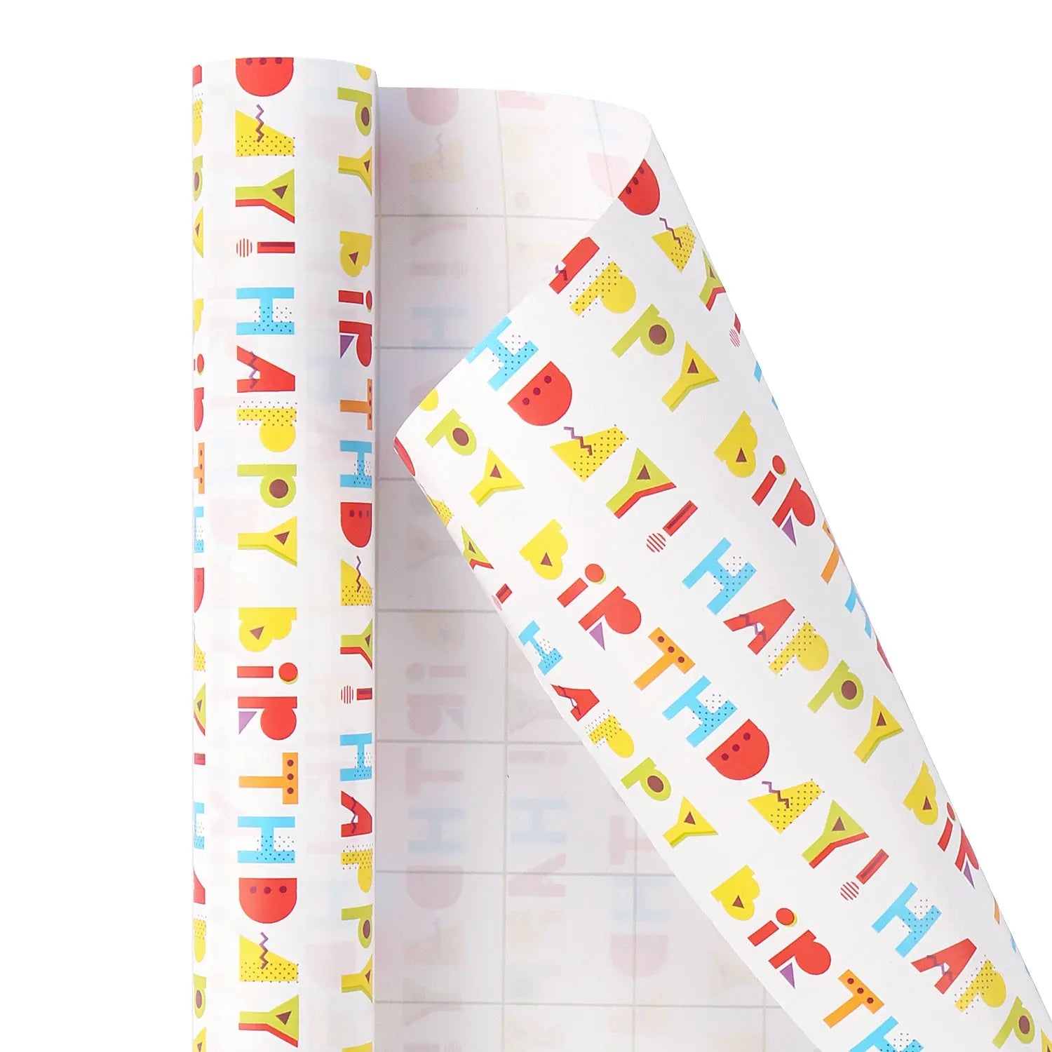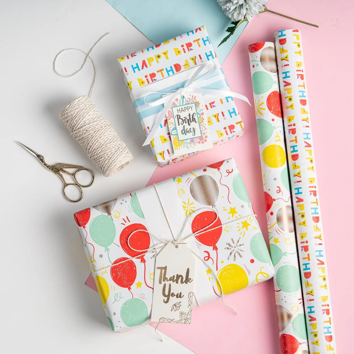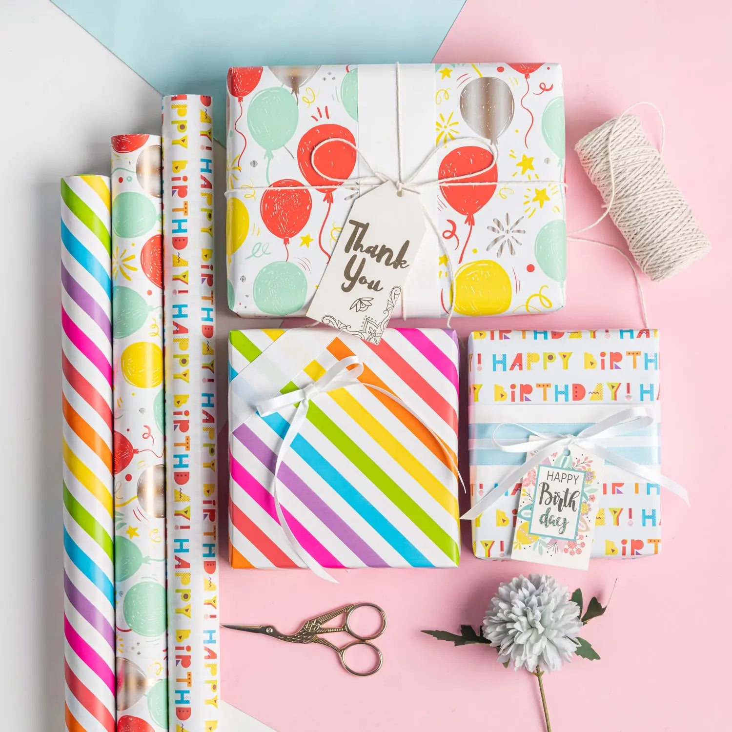 Birthday Mini Wrapping Paper 3 Roll Bundle - Happy Birthday/Diagonal Stripe/Balloon Designs - 17" x 120"/Roll (42.3 Sq Ft Total)