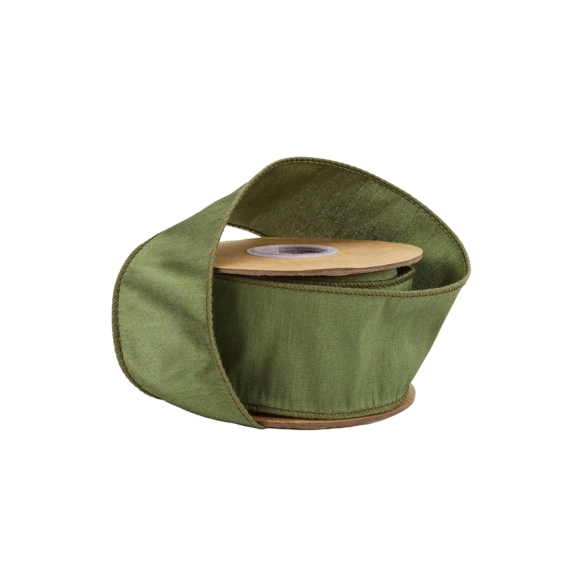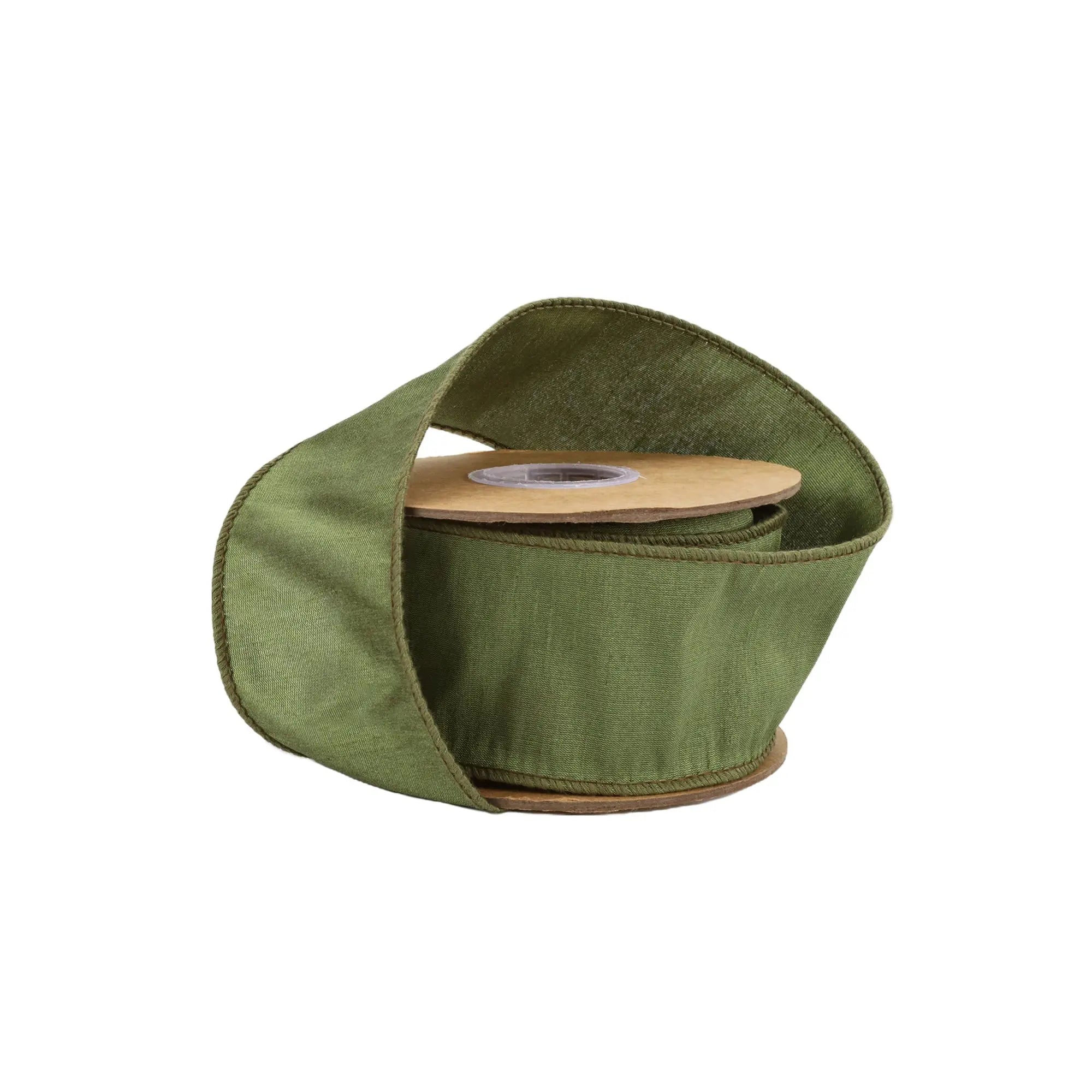 2 1/2" Wired Dupioni Ribbon | 10 Yards | Moss