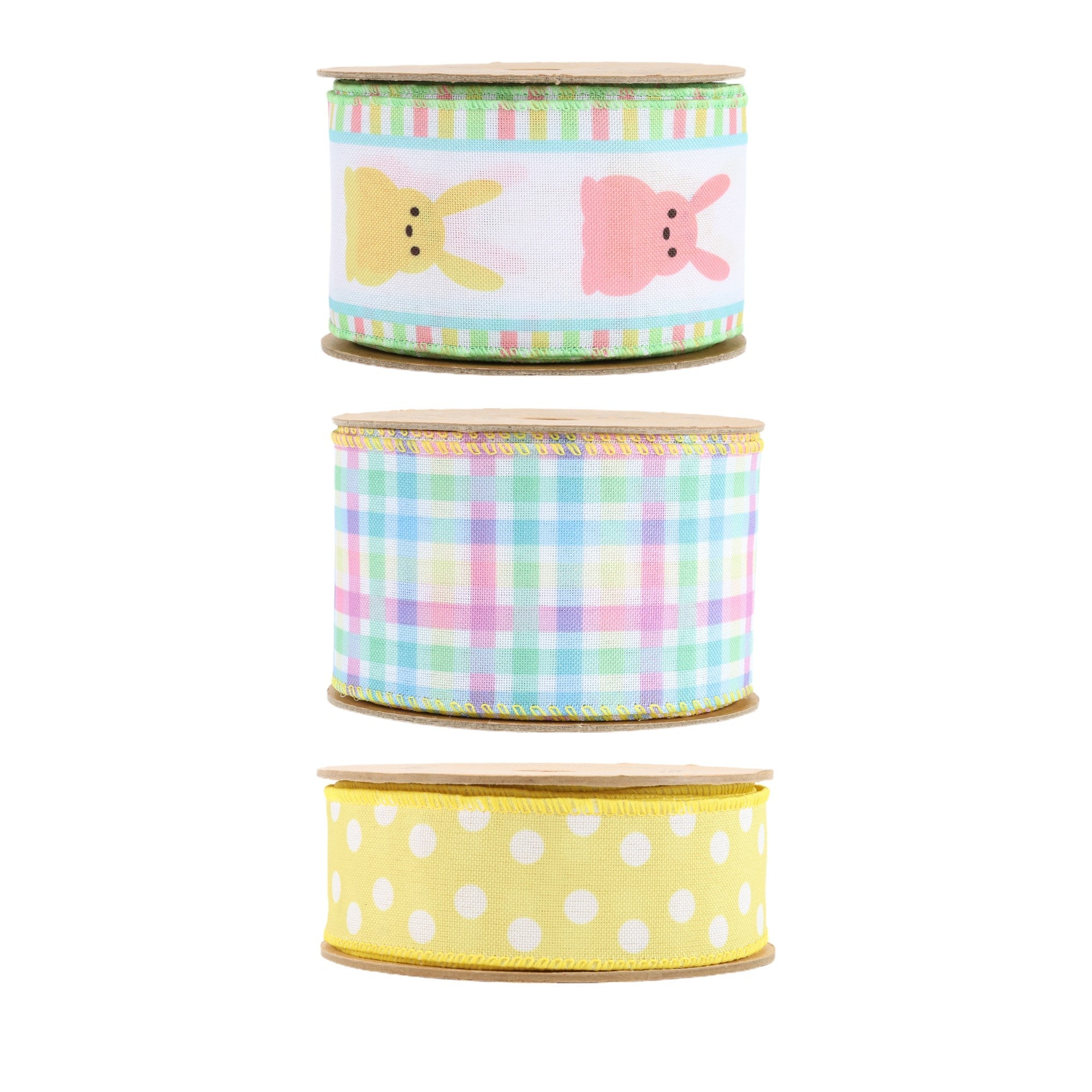 2.5" Pastel Easter Bunny/Plaid/Polka Dot Wired Ribbon Bundle - 3 Rolls/30 Yards Total