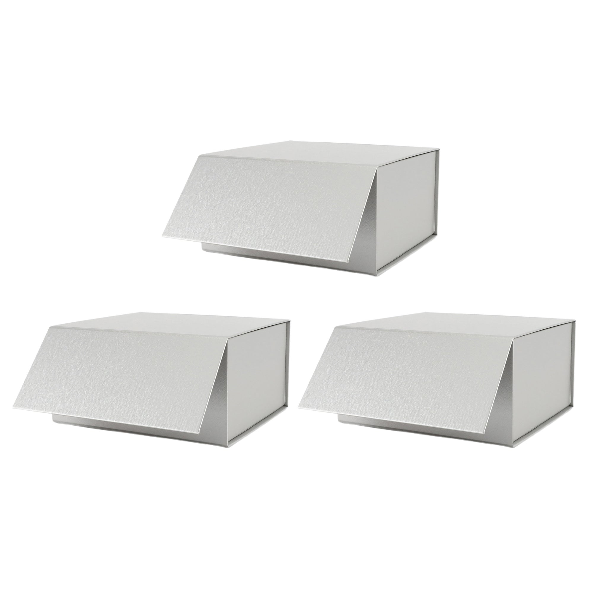 8" x 8" x 4" Collapsable Gift Box w/ Magnetic Square Flap Lid (3-pack) | Silver