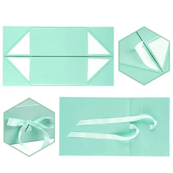 8" x 8" x 4" Collapsable Gift Box w/ Satin Ribbon & Magnetic Square Flap Lid (3-pack) | Mint