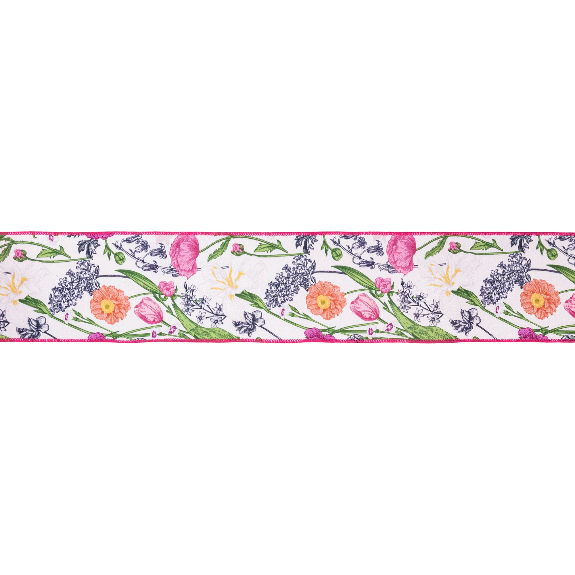 4" Wired Dupioni Ribbon | Floral Stems w/ Pink Backing | 10 Yard Roll
