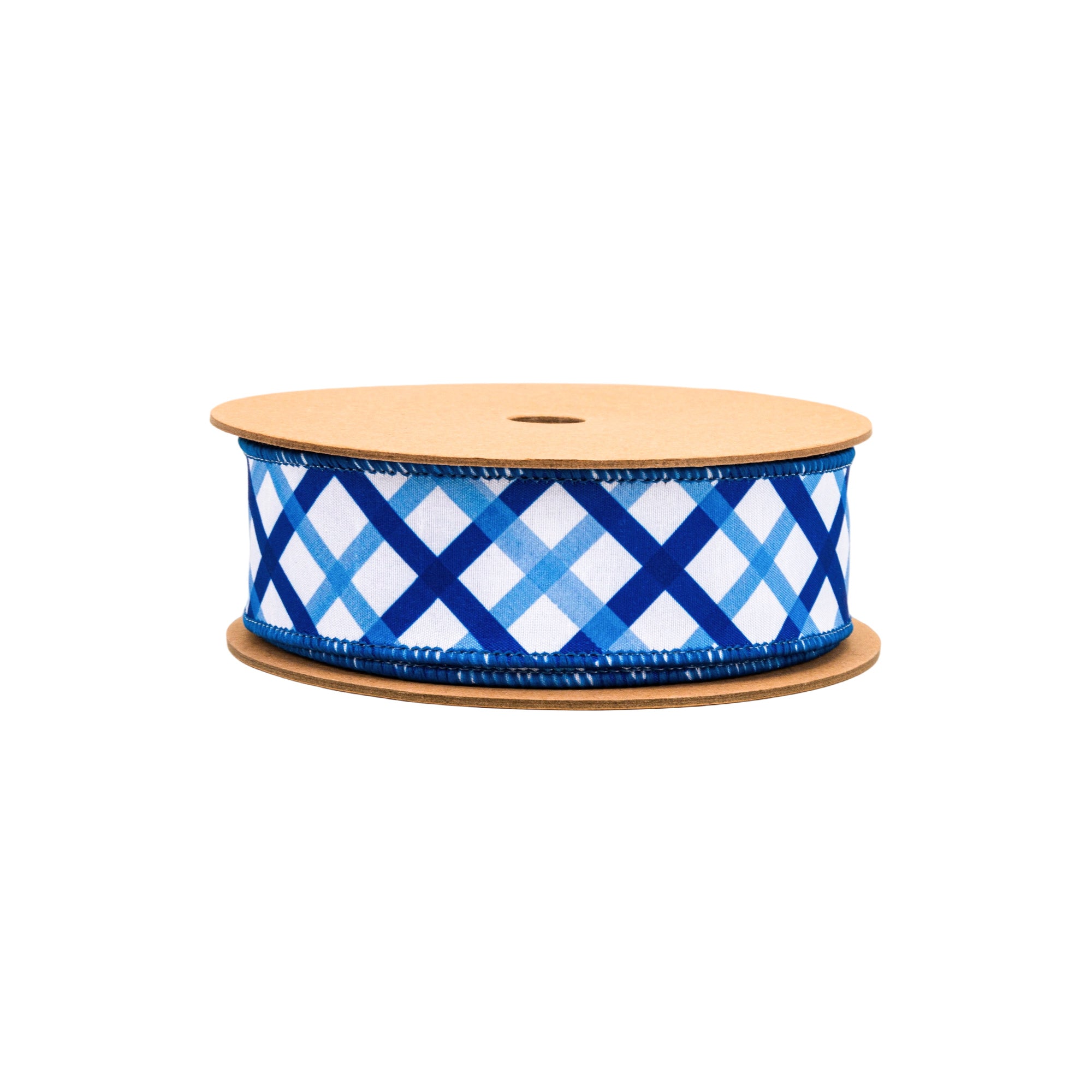 1 1/2" Wired Dupioni Ribbon | Blue and White Decorative Stripe w/ Blue Backing 10Yard Roll
