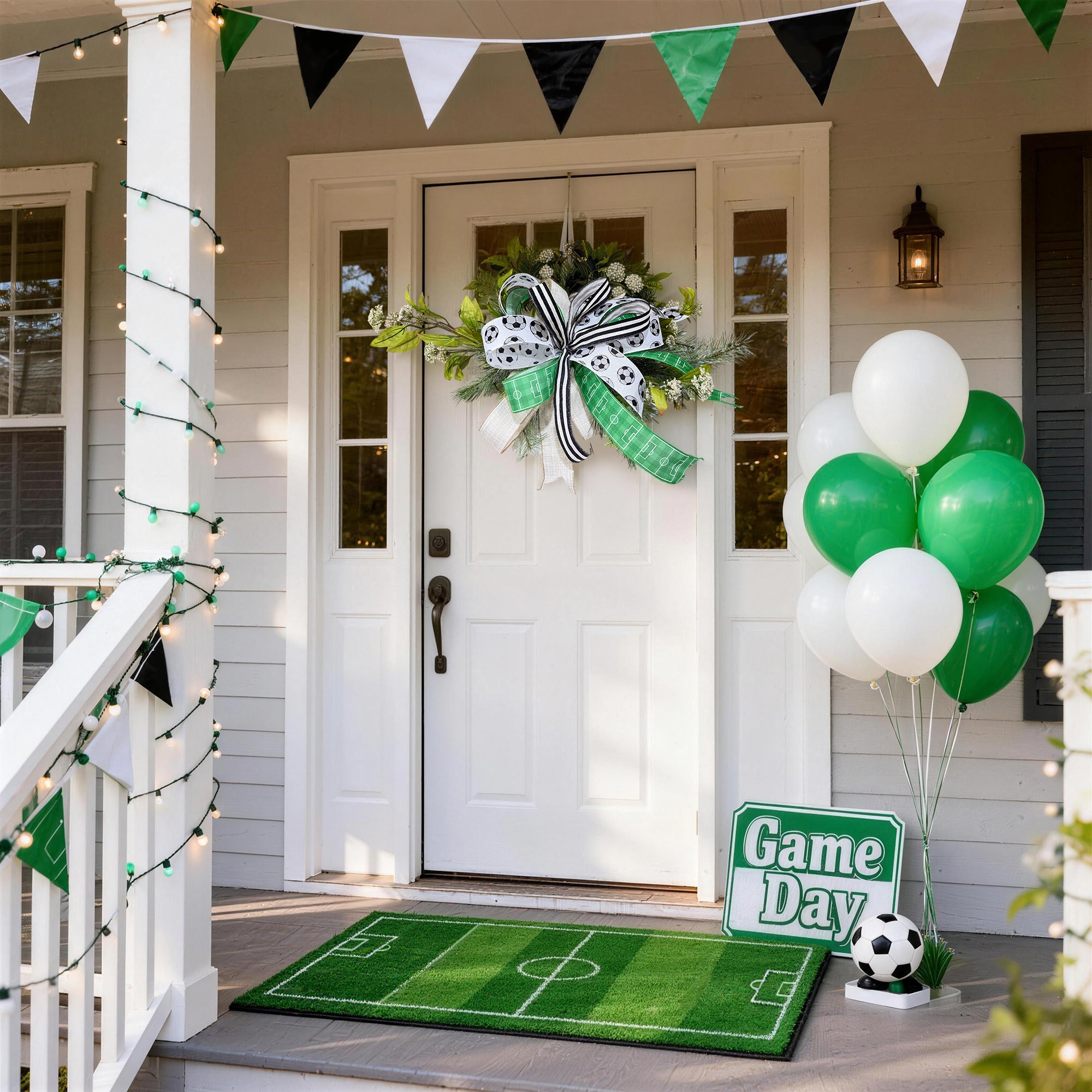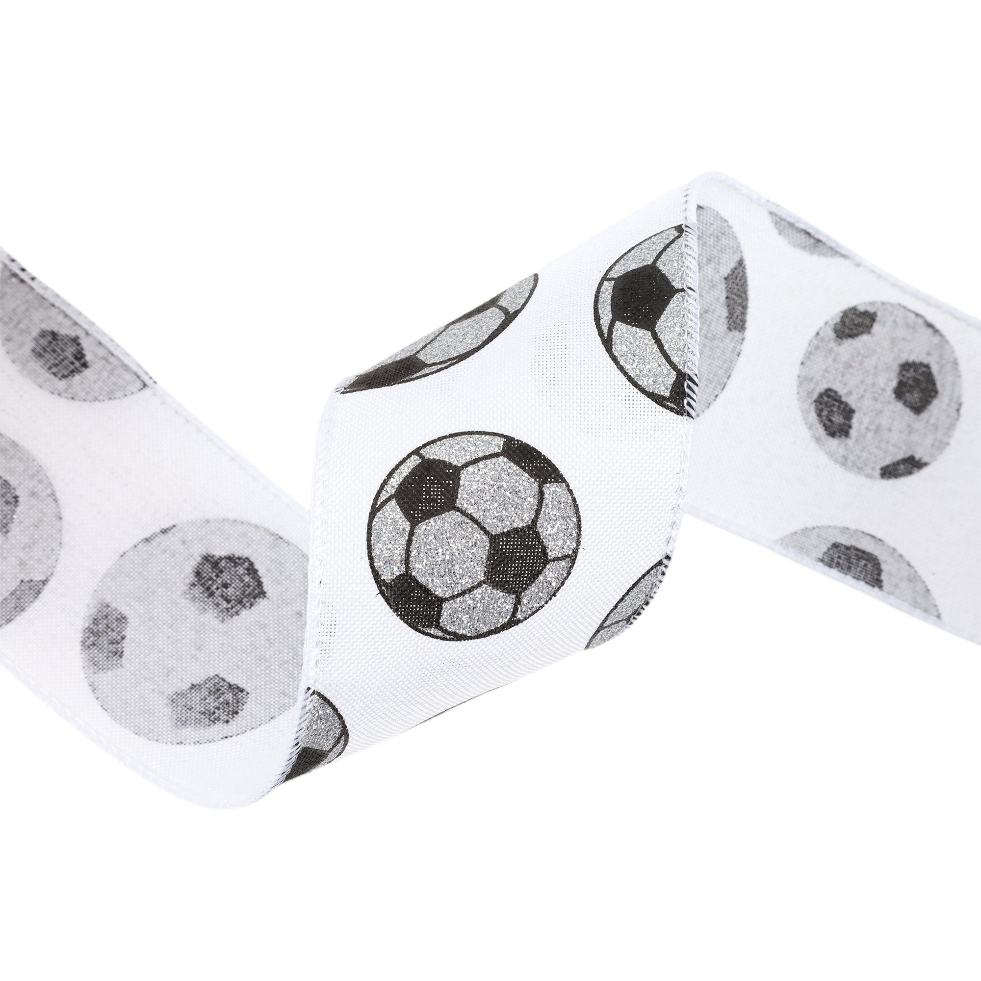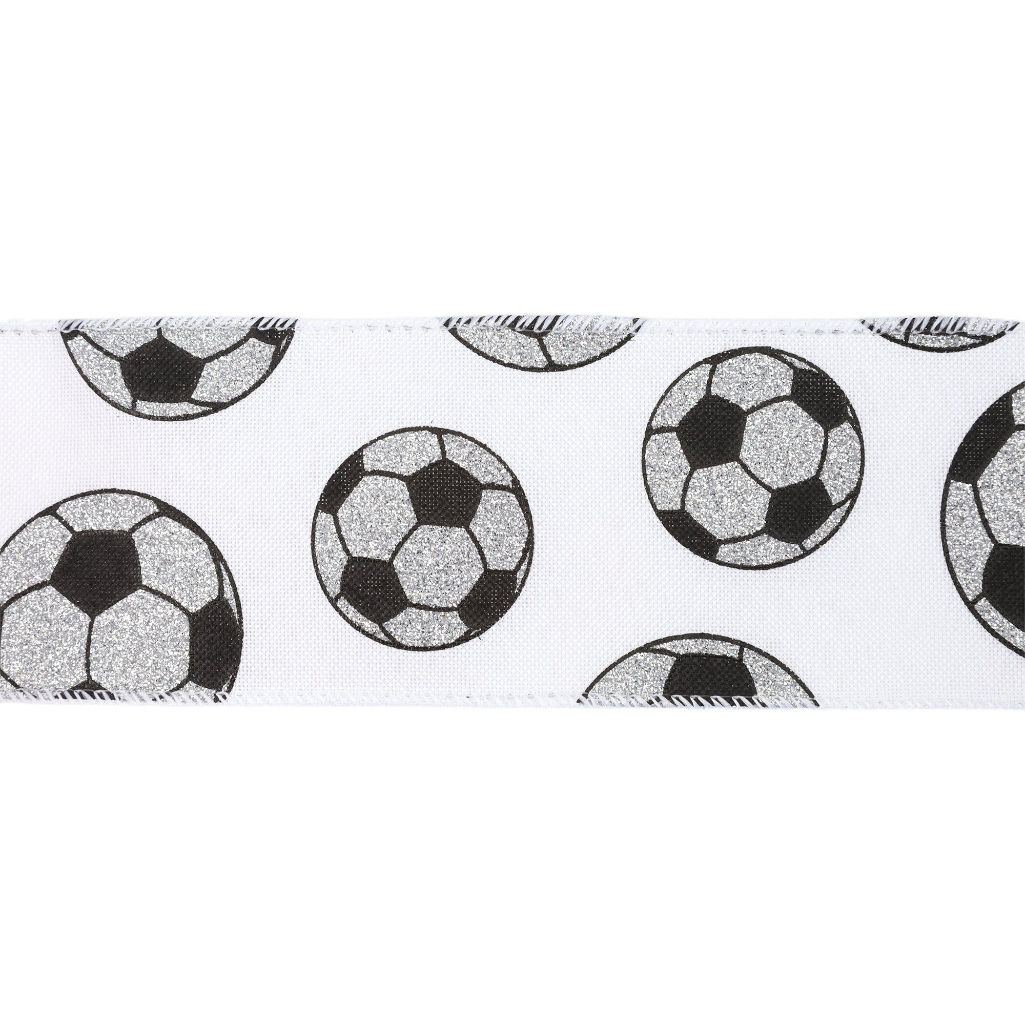 Glitter Soccer Balls and Soccer Field with Black Striped Canvas Ribbon |4 Rolls |40 Yards