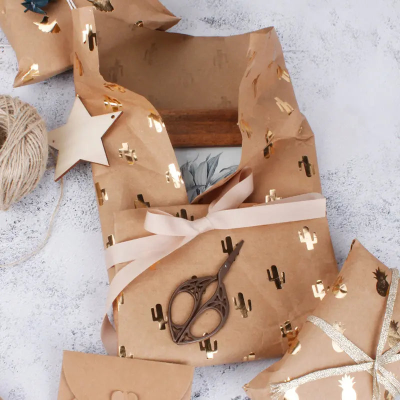 Pineapple Gold Foil Kraft Wrapping Paper Sheets - (4) - 30" X 20" Sheets