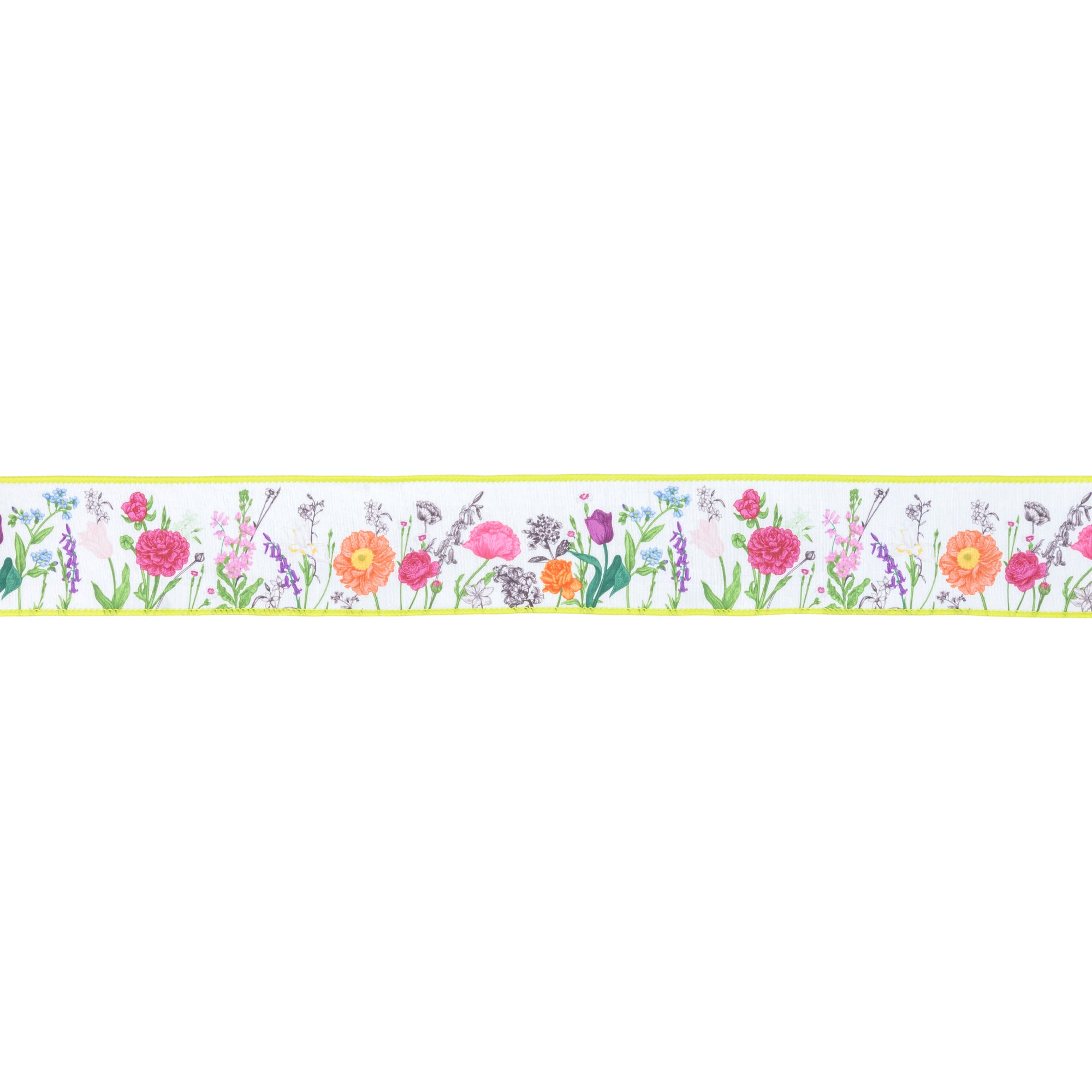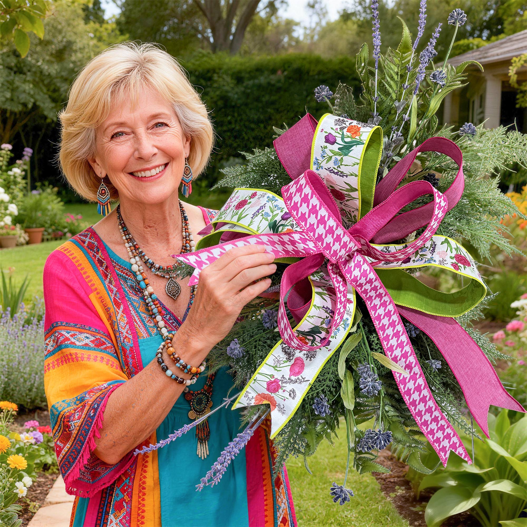 Spring Day Floral Stems with Pink/White Herringbone Ribbon Bundle 3 Rolls |30 Yards
