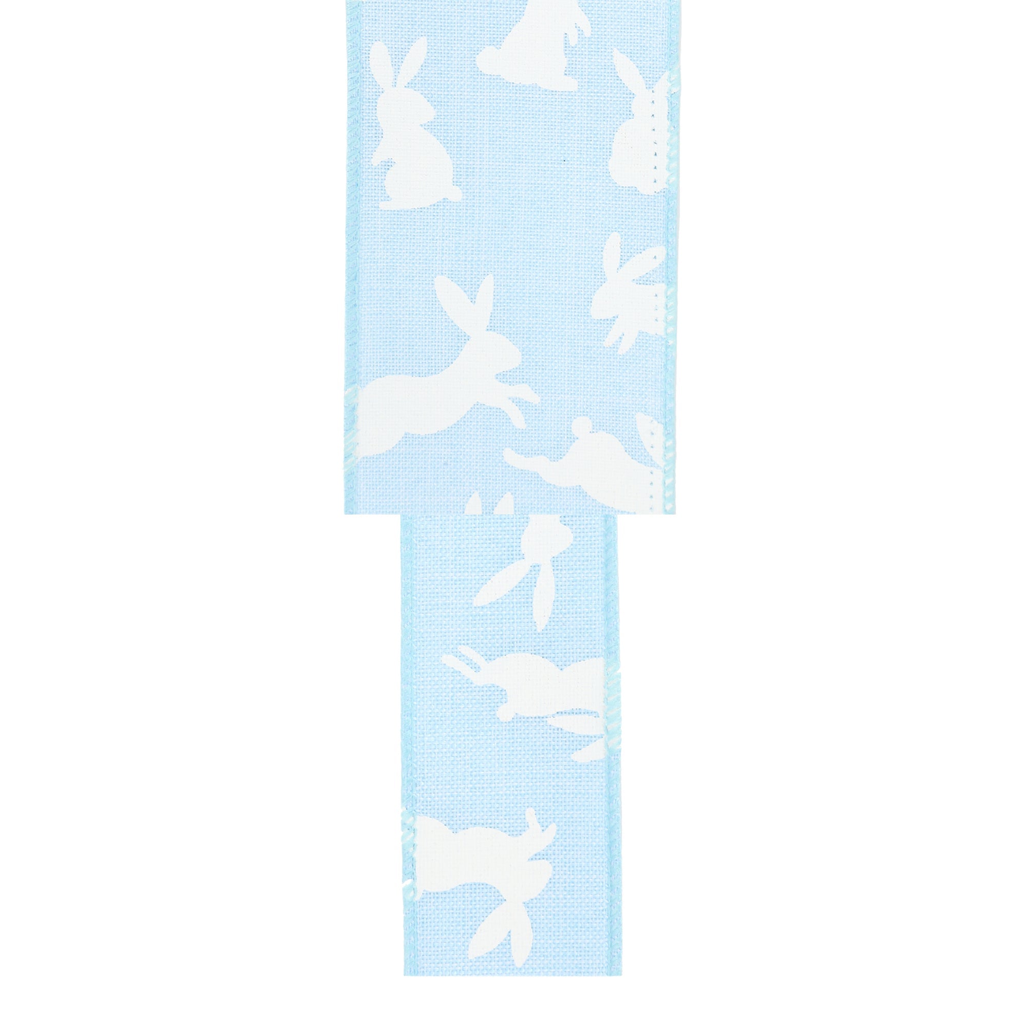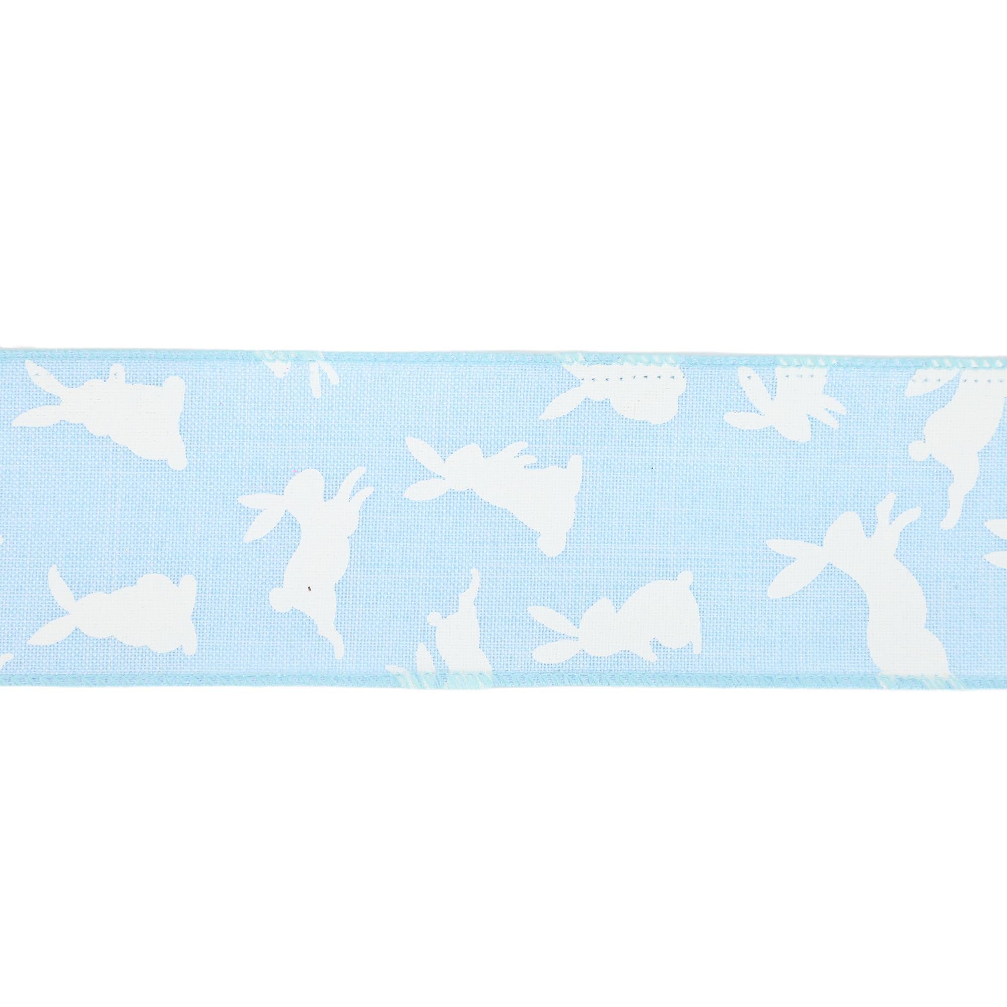 1 1/2" Wired Ribbon | Blue w/ White All Over Bunny | 10 Yard Roll