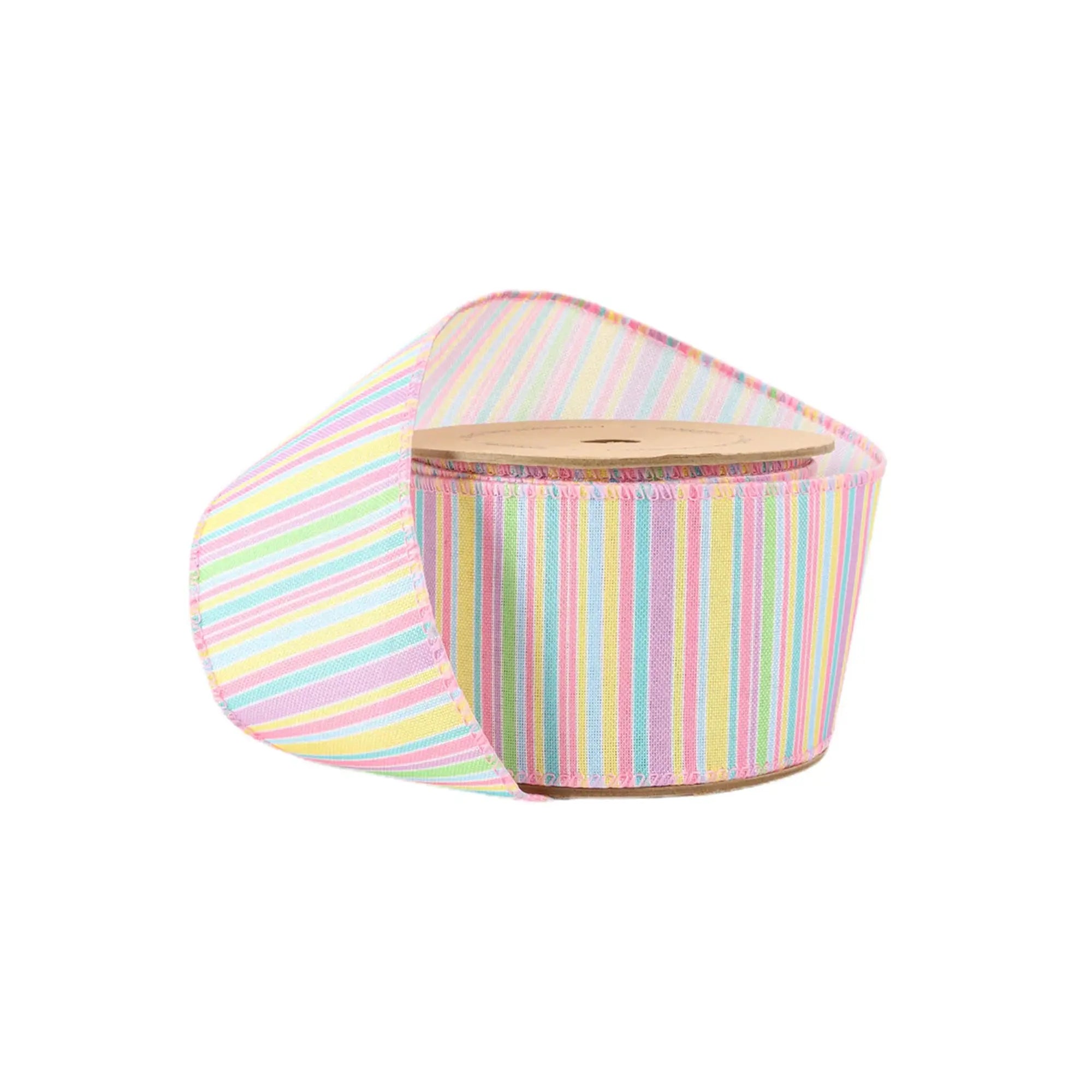 Wired Ribbon | Pastel Horizontal Stripe | 10 Yard Roll