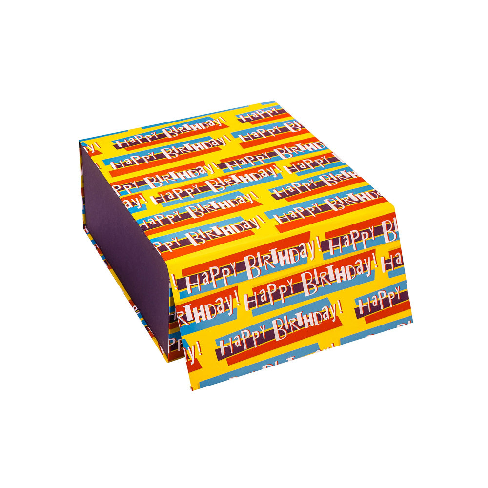 Colorful Happy Birthday Collapsible Magnetic Gift Box - 2 Pcs Tissue Paper - 8X8X4 Inches
